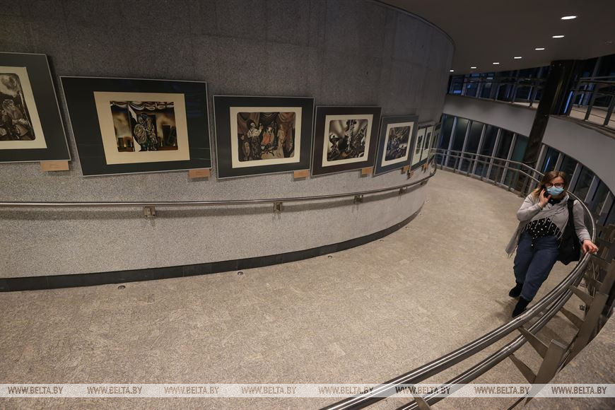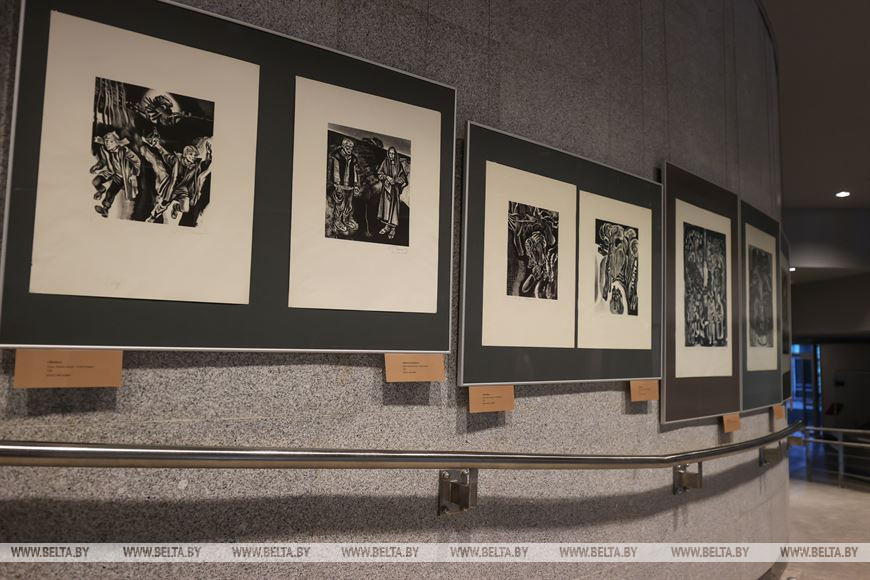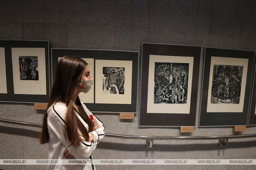 По словам Риммы Рум, следующим этапом творческого становления Георгия Поплавского стало его путешествие по Полесью. Если в Минске тогда бурлила жизнь, то в селах все еще помнили и скорбели о погибших на войне. "Чуть ли не в каждом доме он видел фотографии ребят в форме, которые не вернулись домой. А рядом - женщин, потерявших сыновей и мужей. Под этими впечатлениями он создал серию картин "Память". На выставке представлено более 20 эстампов из графических серий, посвященных войне. Среди них "Память", "По мотивам произведений Алеся Адамовича", "Время длинных ножей", "Хроника одного отряда". "В 2018 году жена художника Наталья Поплавская передала музею 300 графических работ мастера на тему войны, причем все они разные", - добавила куратор выставки.