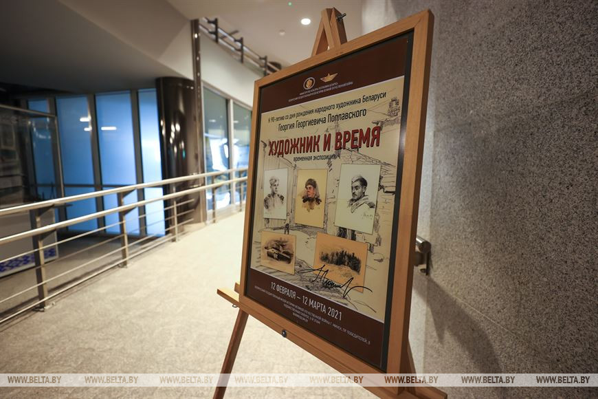 12 февраля, Минск /Корр. БЕЛТА/. В Белорусском государственном музее истории Великой Отечественной войны открылась временная экспозиция "Художник и время" к 90-летию со дня рождения народного художника Беларуси, лауреата Государственной премии Георгия Поплавского, передает корреспондент БЕЛТА.