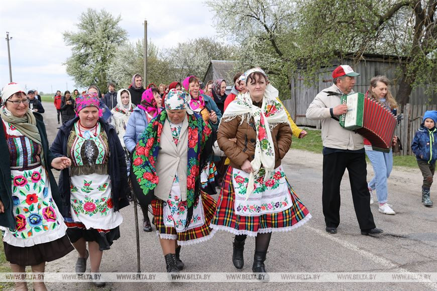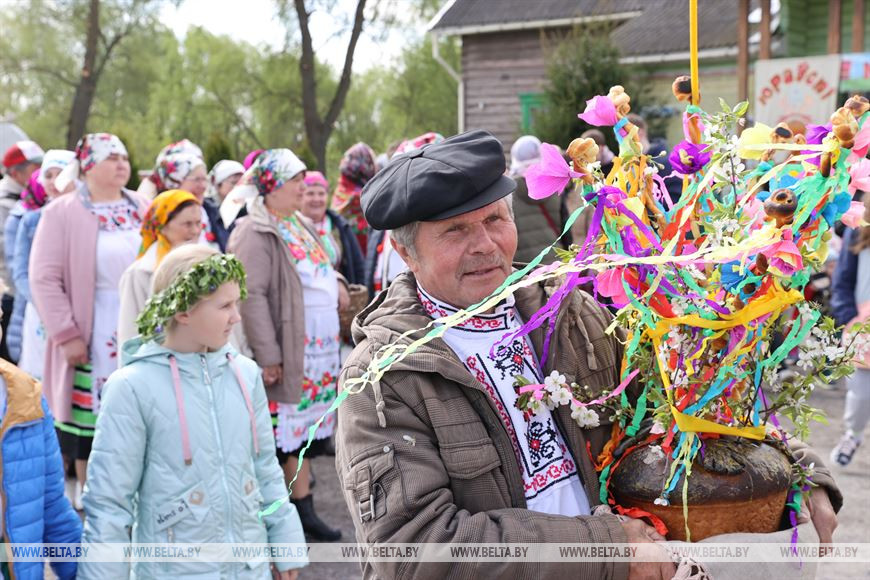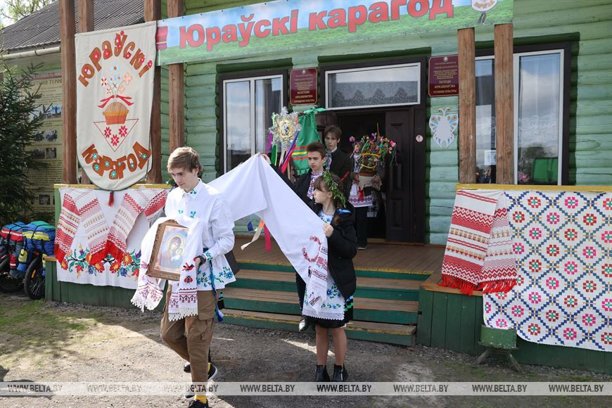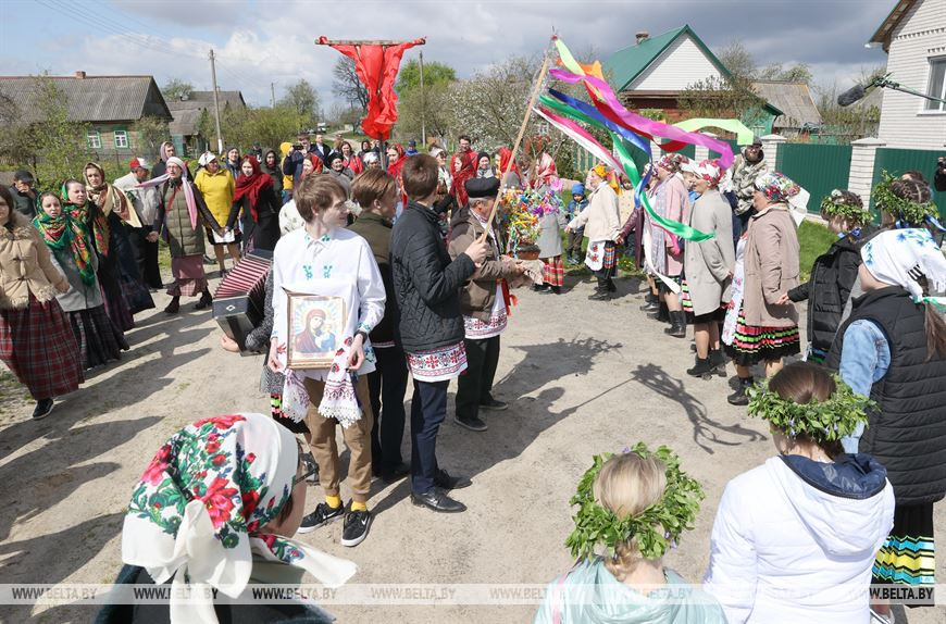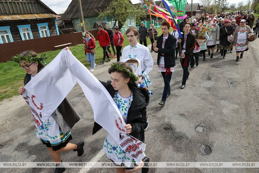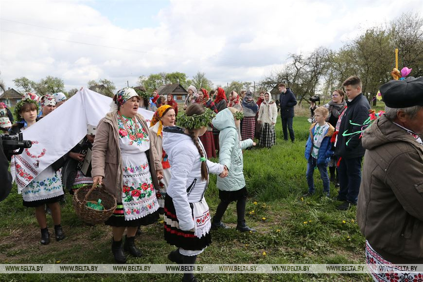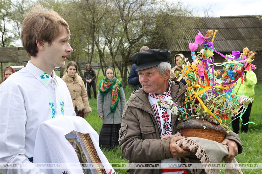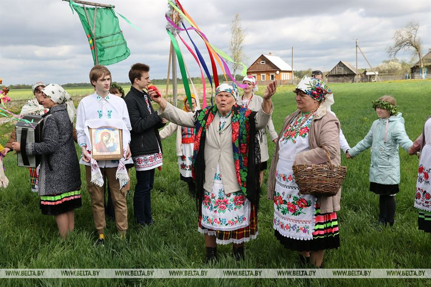 6 мая, Гомель /Корр. БЕЛТА/. В День святого Юрия в деревне Погост Житковичского района участники обряда "Юраўскі карагод" в венках и национальной одежде выходят в поле, водят хороводы, обращаются к Богу с просьбой о хорошем урожае, принося в жертву специально испеченный и украшенный каравай хлеба. Обряд имеет статус нематериальной историко-культурной ценности. -0-