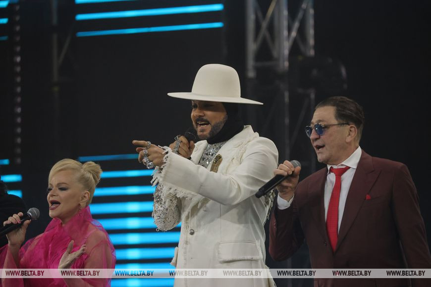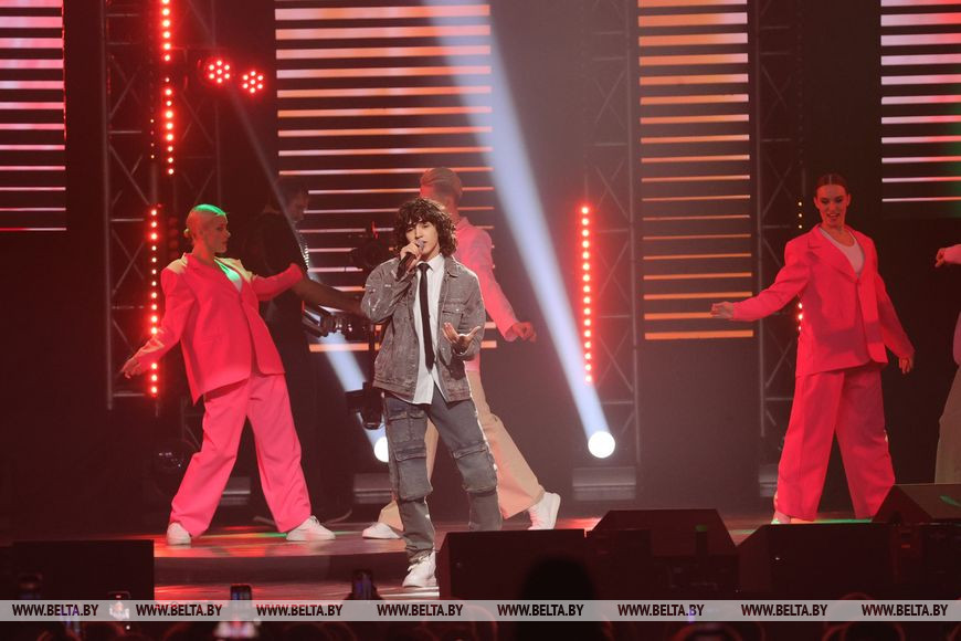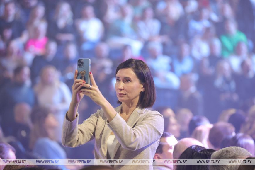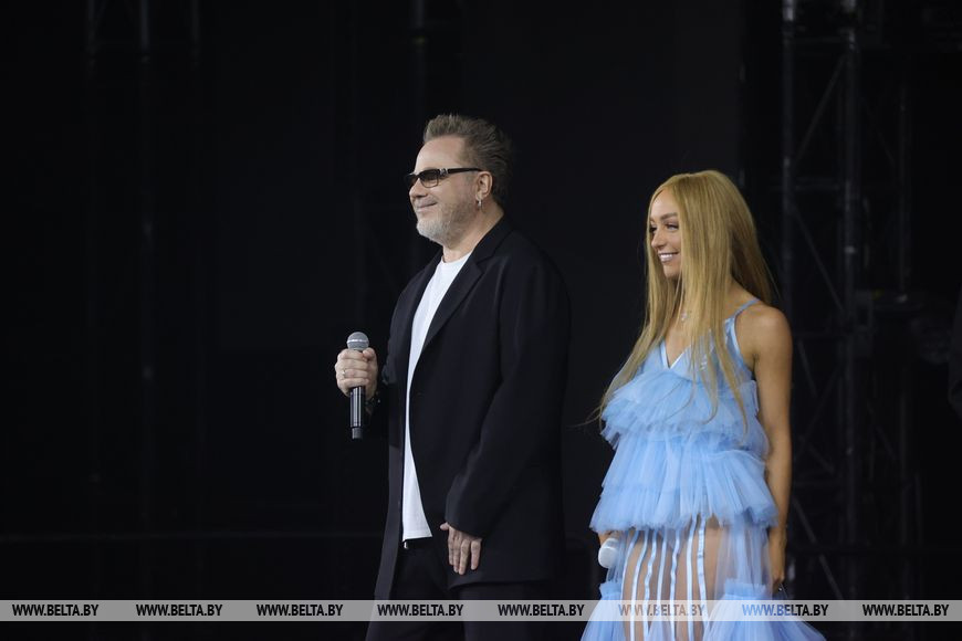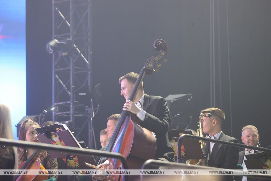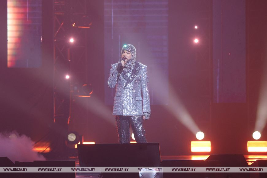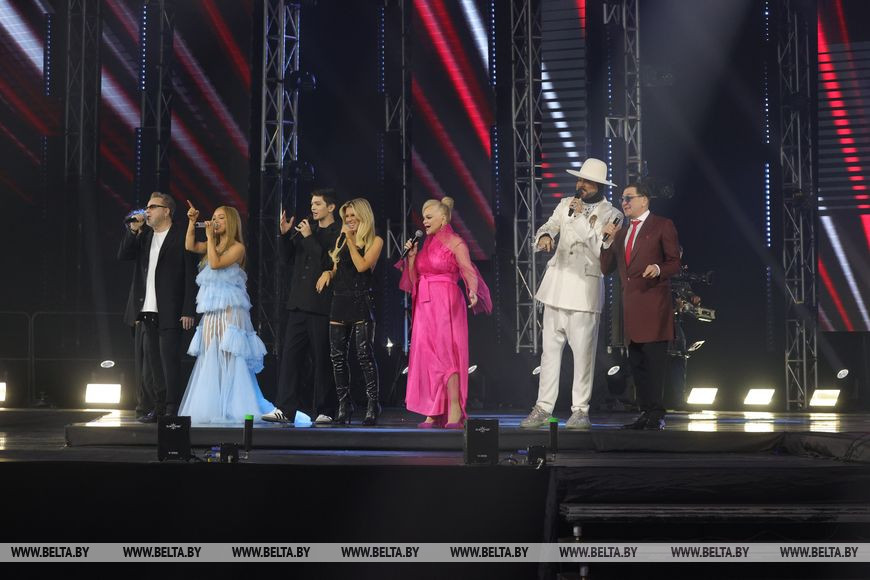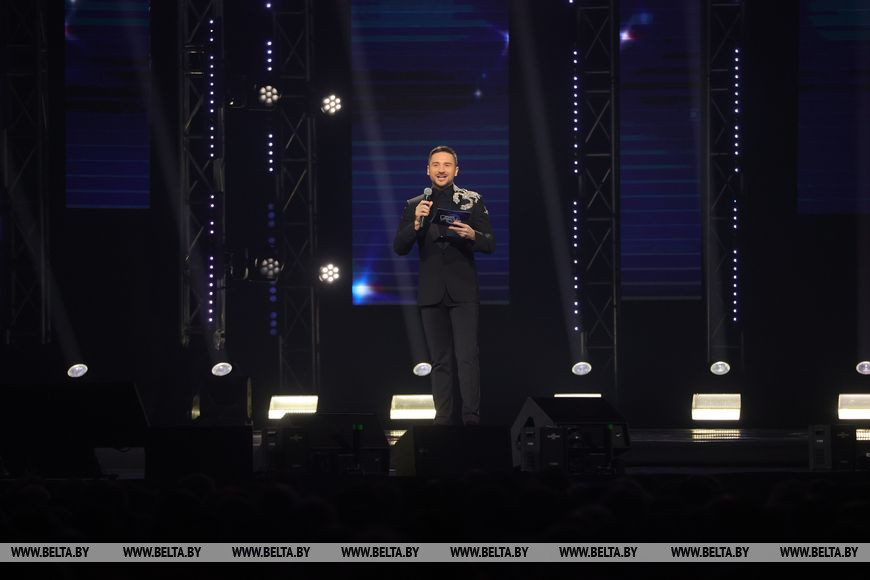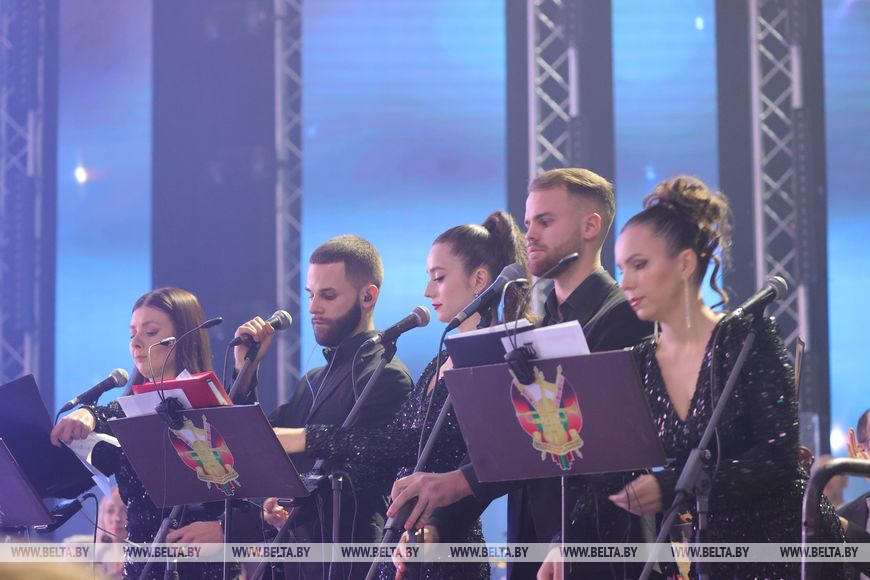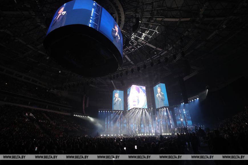 10 декабря, Минск /Корр. БЕЛТА/. На сцене "Минск-Арены" открылся телефестиваль "Песня года 2023". Концерт проходит в сопровождении заслуженного коллектива Президентского оркестра Республики Беларусь под управлением главного дирижера Виталия Кульбакова.-0-