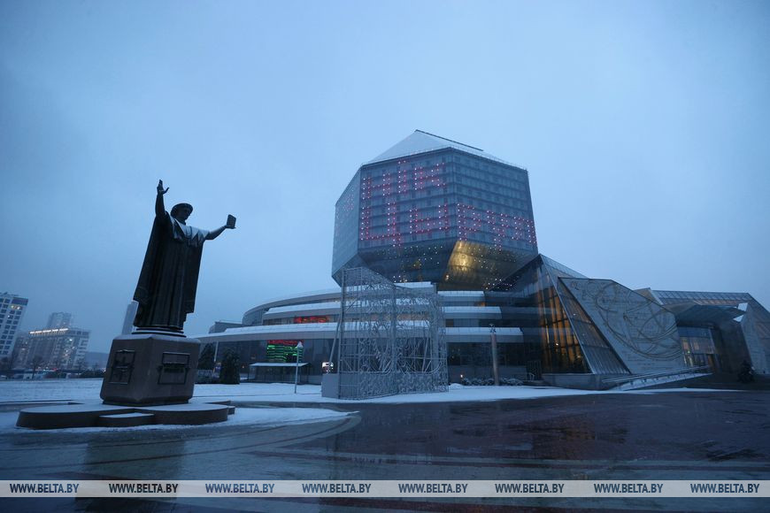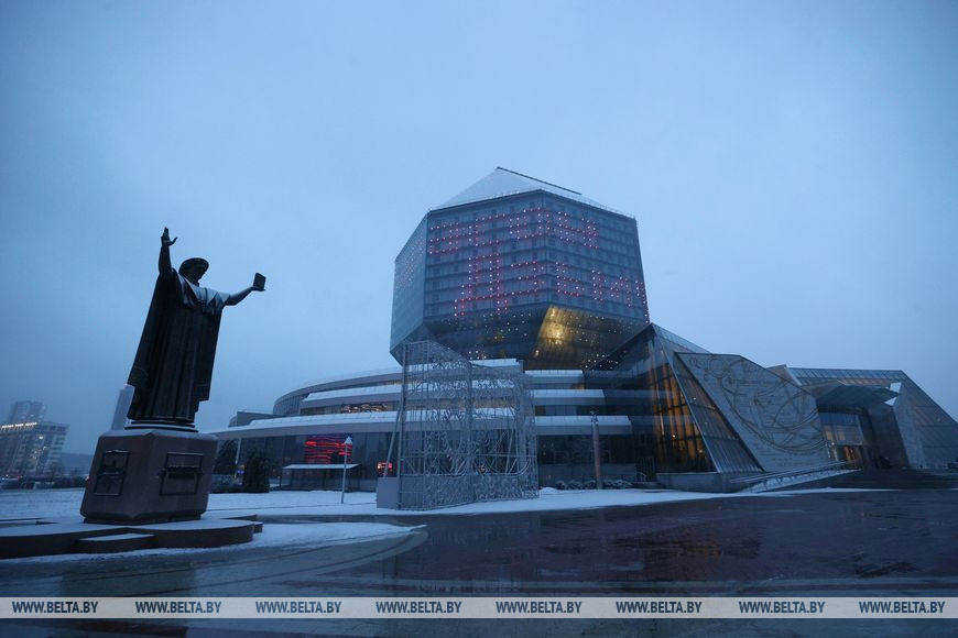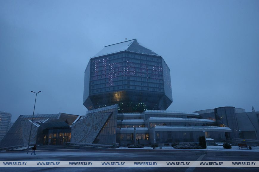 20 февраля, Минск /Корр. БЕЛТА/. Три вечера - с 19 по 21 февраля - на внешнем электронном световом табло Национальной библиотеки можно будет увидеть праздничные графические рисунки с известными стихами, цитатами классиков белорусской литературы, белорусскими словами, отражающими красоту и уникальность родного языка.-0-