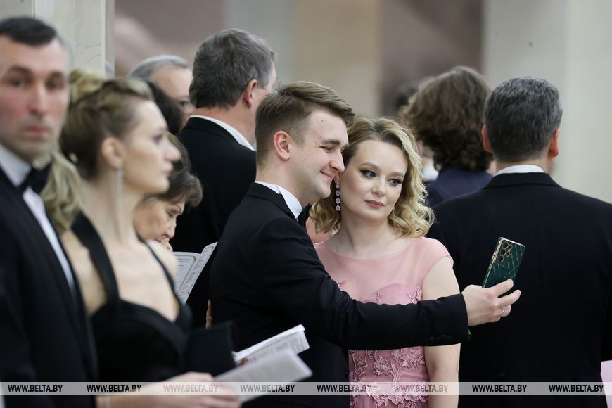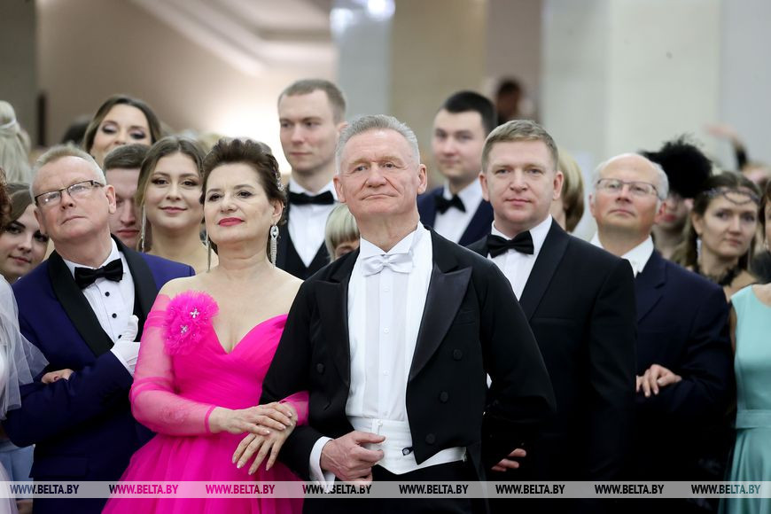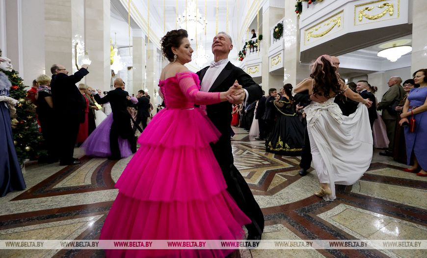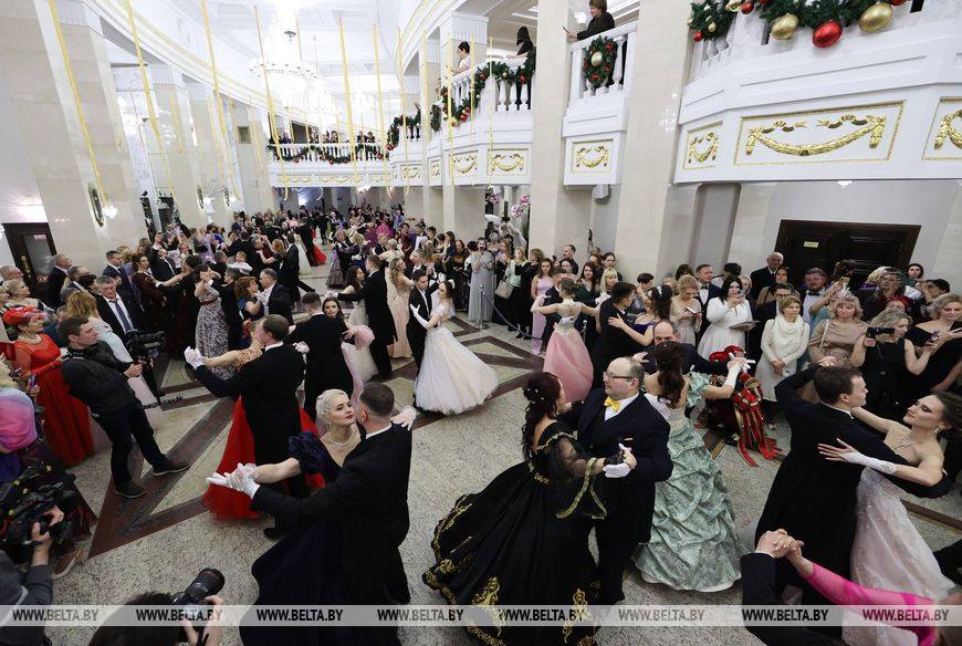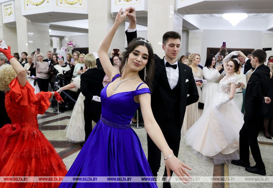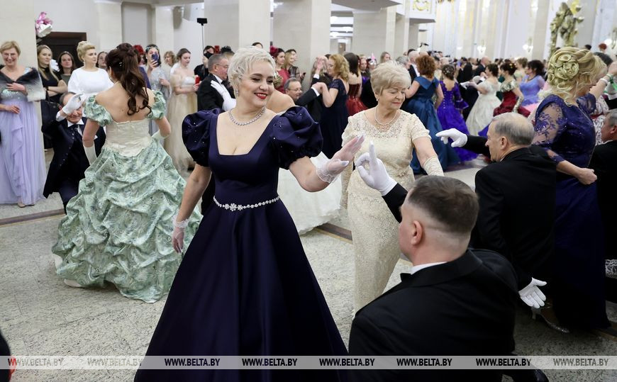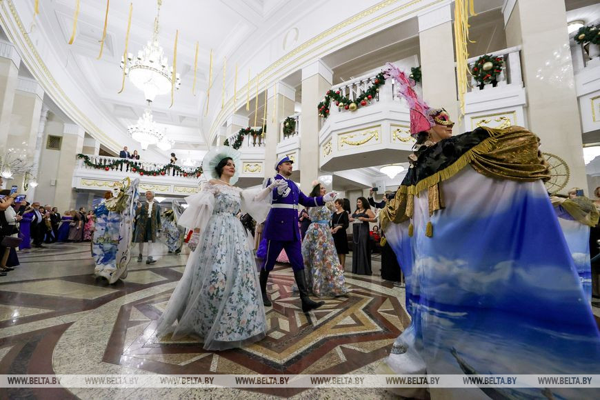 13 января, Минск /Корр. БЕЛТА/. В 14-й раз в Большом театре Беларуси в ночь на старый Новый год - с 13 на 14 января - прошел бал. По традиции основное танцевальное действо развернулось в фойе. Занятия под руководством заслуженной артистки Беларуси балетмейстера Юлии Дятко начались 6 ноября. И уже 13 января кавалеры и их дамы чинно прошли в полонезе, маршах, покружились в вальсах и станцевали польку.-0-