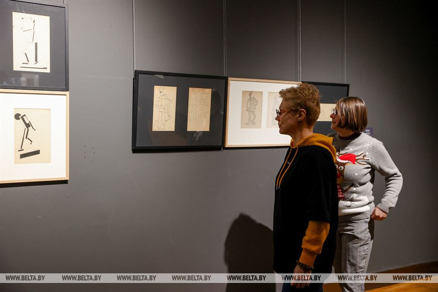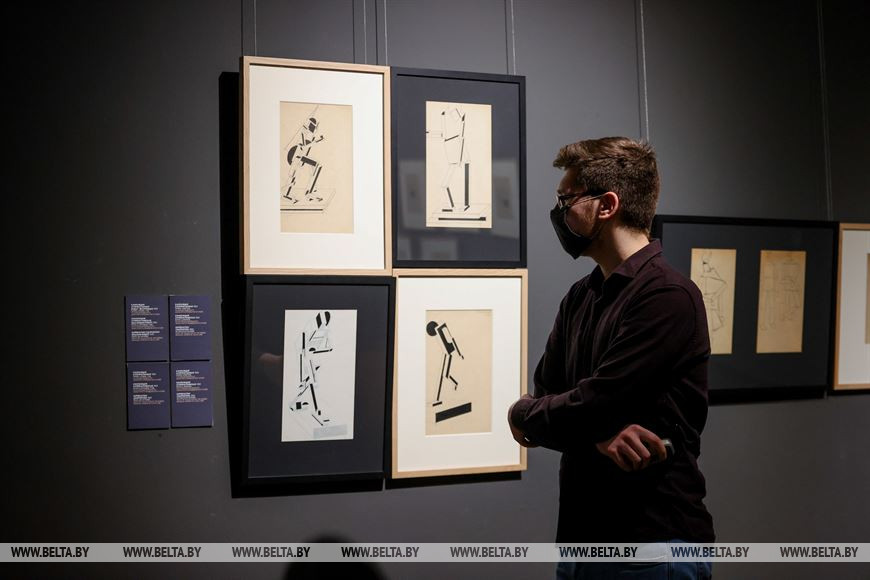 На выставке представлено более 100 графических работ и скульптур, а также архивные фотографии. Посетители смогут увидеть эксперименты в духе кубизма и экспрессионизма, пленэрные городские зарисовки Витебска, студенческие архитектурные зарисовки, фигурную скульптуру 1930-х годов, которая представляет изображения лиц различных рас. Некоторые из новаторских супрематических произведений 1920-х годов представляют собой объемные фигуры в виде человека, которые сегодня бы назвали роботами.