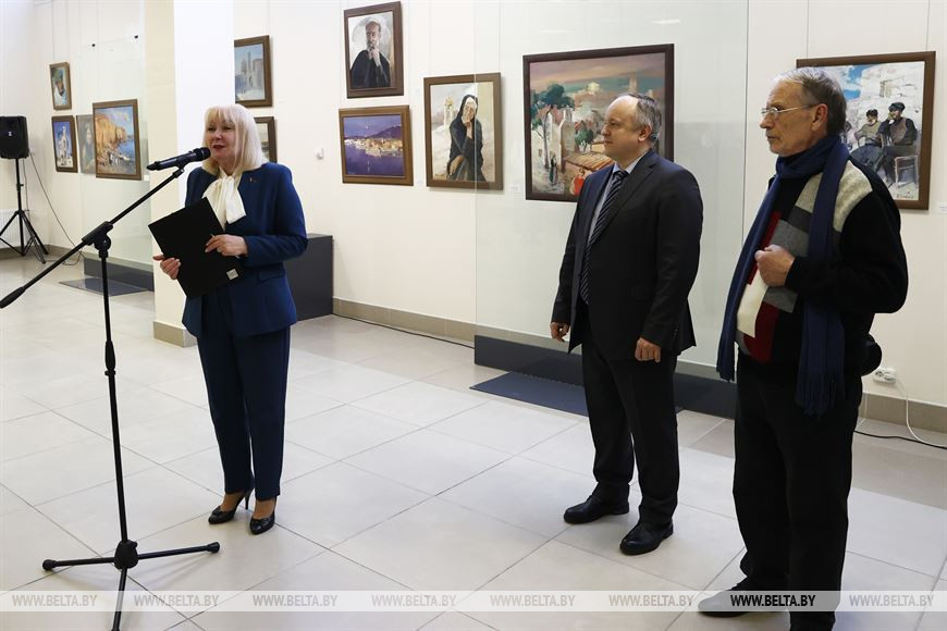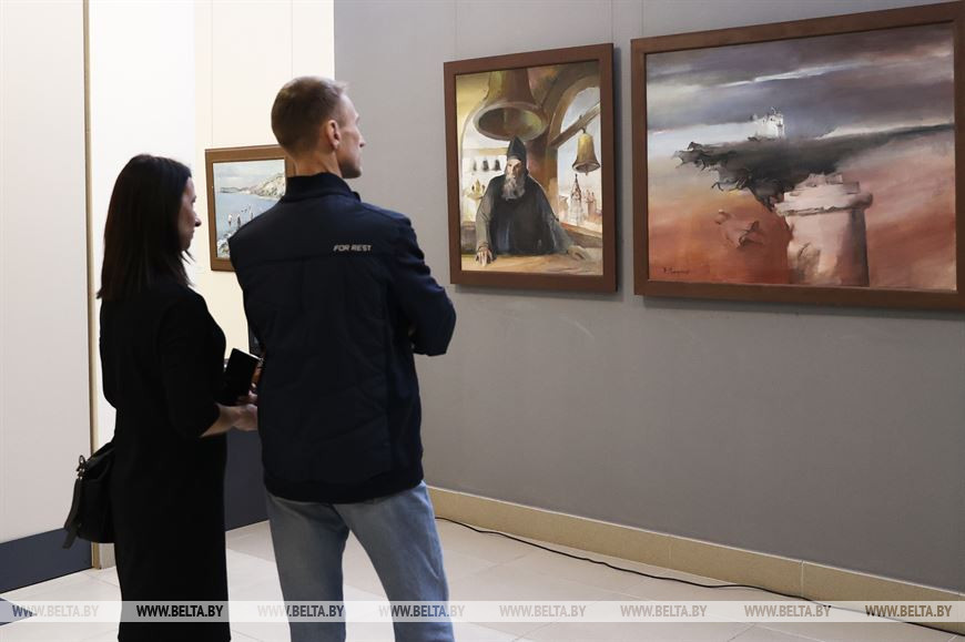29 марта, Минск /Корр. БЕЛТА/. В Художественной галерее Михаила Савицкого открылась выставка живописи члена Белорусского союза художников Владимира Гладкова "Между небом и землей", посвященная Дню единения народов Беларуси и России. В экспозицию вошло более 50 произведений живописи, раскрывающих исторический уклад жизни, самобытность и национальные традиции народов Беларуси, России, Узбекистана, Туркменистана, Кыргызстана, Таджикистана, Греции, Турции, Китая, Афганистана.-0-