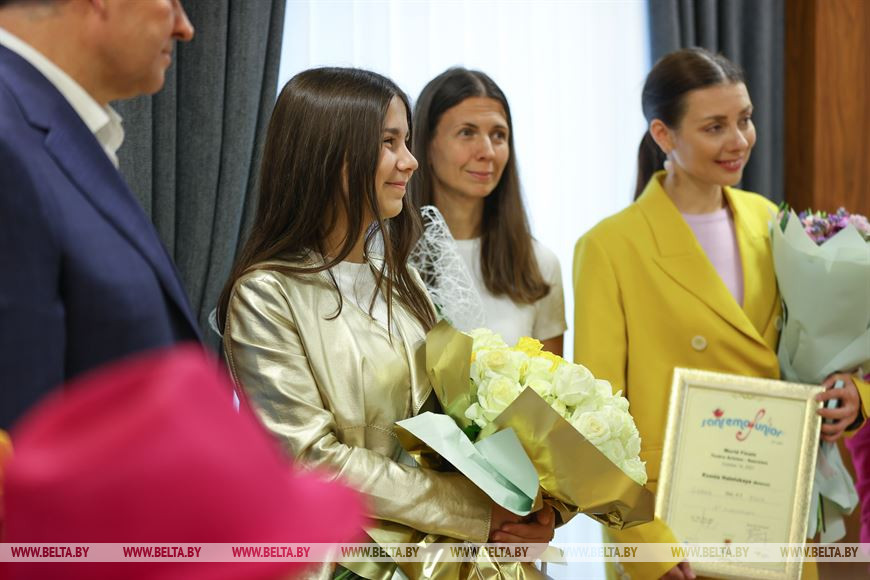 Поздравляя молодую исполнительницу, министр отметил: "Благодаря вашему таланту, творчеству, вы прославили свою фамилию, семью, Республику Беларусь на мировой арене. Вы доказали в очередной раз, что на нашей гостеприимной земле живут замечательные люди, прекрасные молодые таланты, которые любят и уважают свою Родину, делают все необходимое для ее дальнейшего процветания".