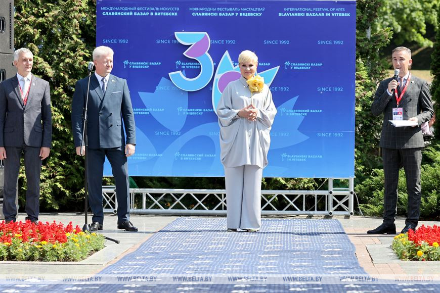 "Очень красивая, талантливая, мудрая женщина является музой фестиваля. Кажется, совсем недавно она говорила, что фестиваль должен иметь свою родину. И вот уже на протяжении более трех десятилетий "Славянский базар" получил прописку на благословенной витебской земле. Вы легендарный человек и, будь то сценическая площадка или телеэкран, всегда показываете настоящее мастерство, высочайший профессионализм. Вы являетесь примером интеллигентности и обаяния, прославляете нашу родную Беларусь, делаете колоссальную работу по укреплению дружбы и взаимопонимания между славянскими народами. И специальная награда Президента Республики Беларусь "Через искусство - к миру и взаимопониманию" - подтверждение высокой оценки государством вашего вклада в культурную дипломатию", - подчеркнул Анатолий Маркевич.