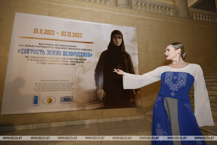 Выставка по результатам пленэра показывает множество образов преподобной Евфросинии, покровительницы и небесной заступницы земли белорусской, которая является ярким примером миролюбия, смирения, кротости и любви к ближним. Митрополит Минский и Заславский Вениамин, Патриарший Экзарха всея Беларуси отметил, что Евфросиния особенно привлекает внимание современного человека. "Святость земли Белорусской прежде всего проявляется в людях. И преподобная Евфросиния - один из наиболее ярких образов проявления святости. Она проявляется в храмах, природе и молитвах, представленных на выставке", - сказал митрополит.