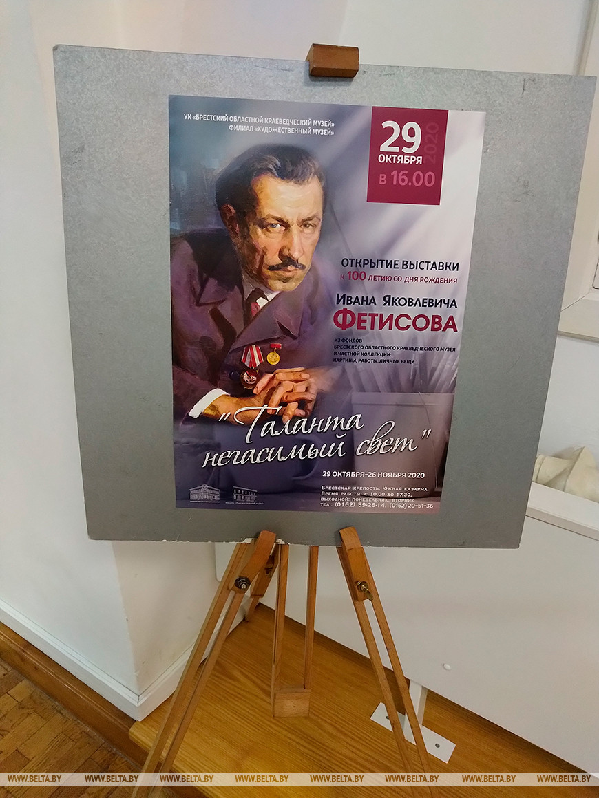 29 октября, Брест /Корр. БЕЛТА/. В Художественном музее в Брестской крепости сегодня открылась выставка "Таланта негасимый свет", приуроченная к 100-летию со дня рождения художника Ивана Фетисова, передает корреспондент БЕЛТА.