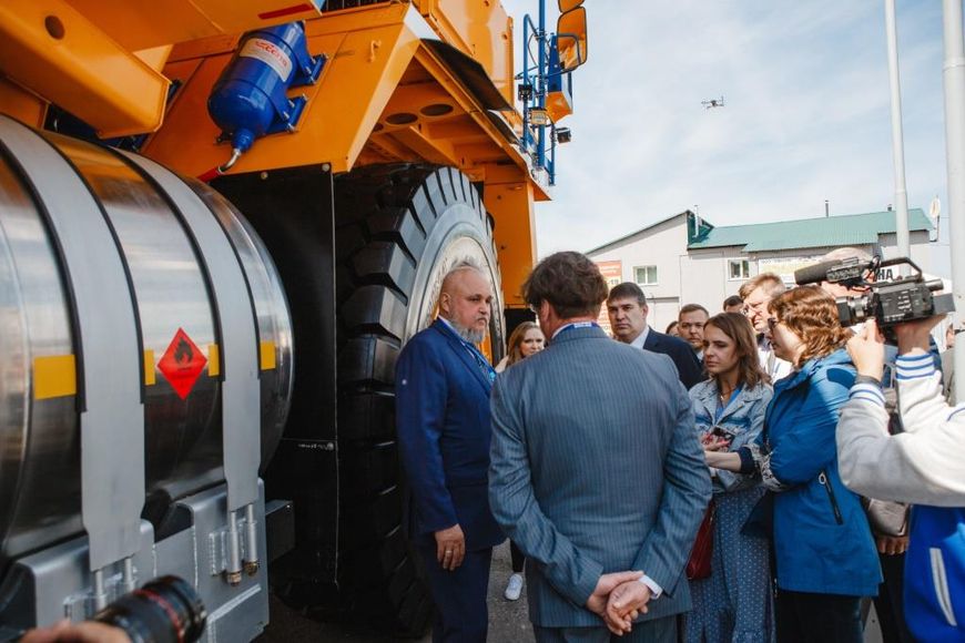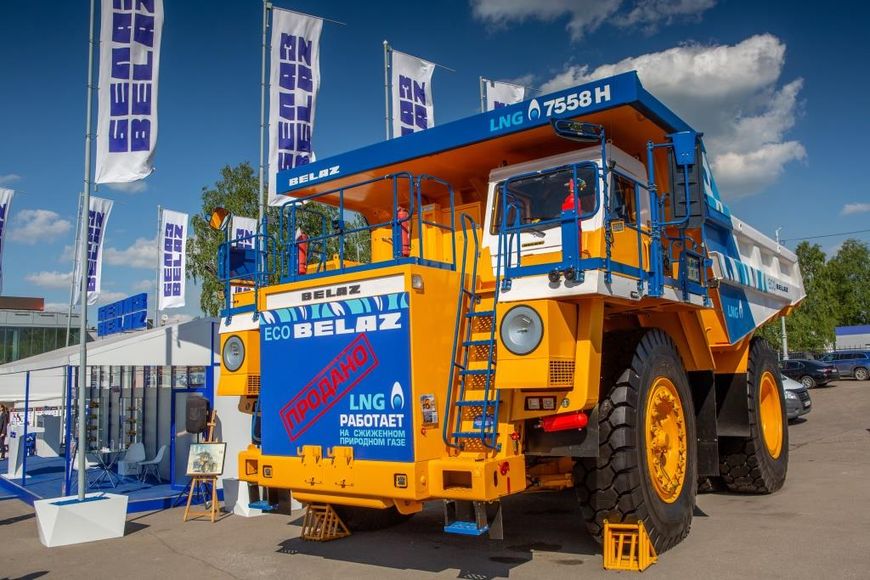 "Наша новинка, впервые представленная публике на выставке, - газовый карьерный самосвал БЕЛАЗ-7558Н - по окончании выставки отправилась потребителю - в компанию ООО "Инвест-углесбыт", где пройдет эксплуатационные испытания. Аналогов такого самосвала на данный момент в мире нет. БЕЛАЗ-7558Н работает на чистом природном газе и оснащен огромным баком на 1,4 тыс. л, которого хватает на полноценную рабочую смену около 10 часов. Газовый двигатель примерно на 30% экономичнее и значительно экологичнее стандартного дизельного мотора", - рассказали в пресс-службе.