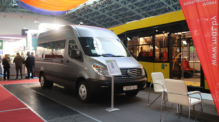 Еще одним экспонатом выставочного стенда Минского автомобильного завода стал пассажирский микроавтобус МАЗ 233150. "Он оборудован шестью пассажирскими сиденьями и сдвижной дверью с автоматически выдвигающейся подножкой для удобного доступа в салон. В качестве освещения используется светодиодная лента и подсветка порогов. В салоне установлен откидной столик, две розетки с переменным током и четыре USB-розетки. Просмотр медиаматериалов возможен при использовании потолочного монитора и аудиосистемы с сенсорным экраном. Салон имеет тепло- и шумоизоляцию. Микроавтобус оборудован шкафом для одежды и местом для хранения багажа. Комфортные условия для переговоров и перемещения делегации обеспечивают наличие холодильника и кофемашины", - рассказали на предприятии.