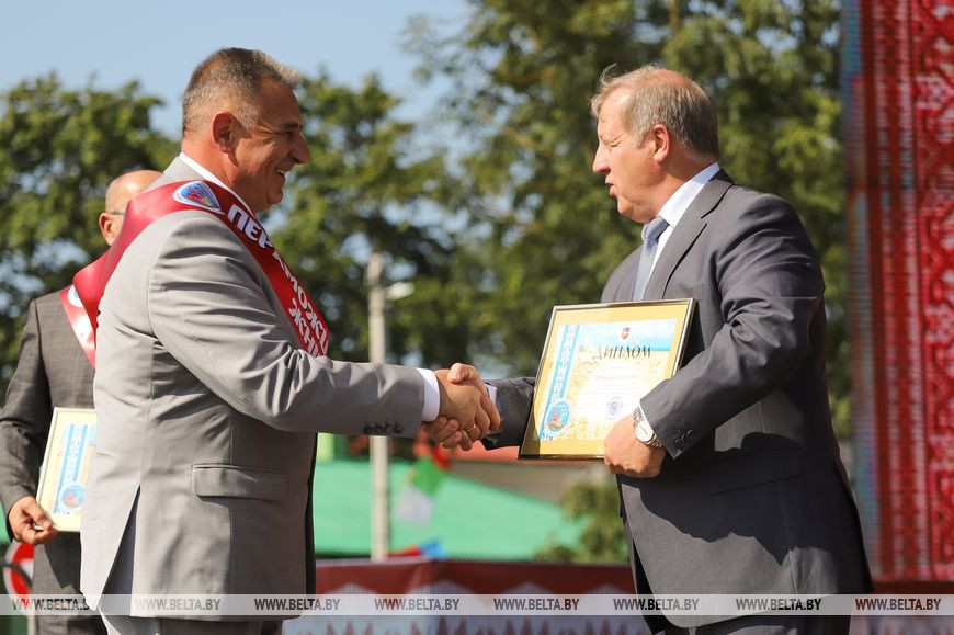 Центральным событием фестиваля стало чествование победителей областного соревнования по уборке урожая. Лучшими признаны Ивановский, Пружанский и Каменецкий районы, среди сельхозорганизаций первое место - у СУП "Ляховичское-Агро" Ивановского района и ОАО "Радостовский" Дрогичинского. Программа праздника рассчитана до позднего вечера, ее завершит концерт артистов белорусской эстрады и фейерверк.-0-