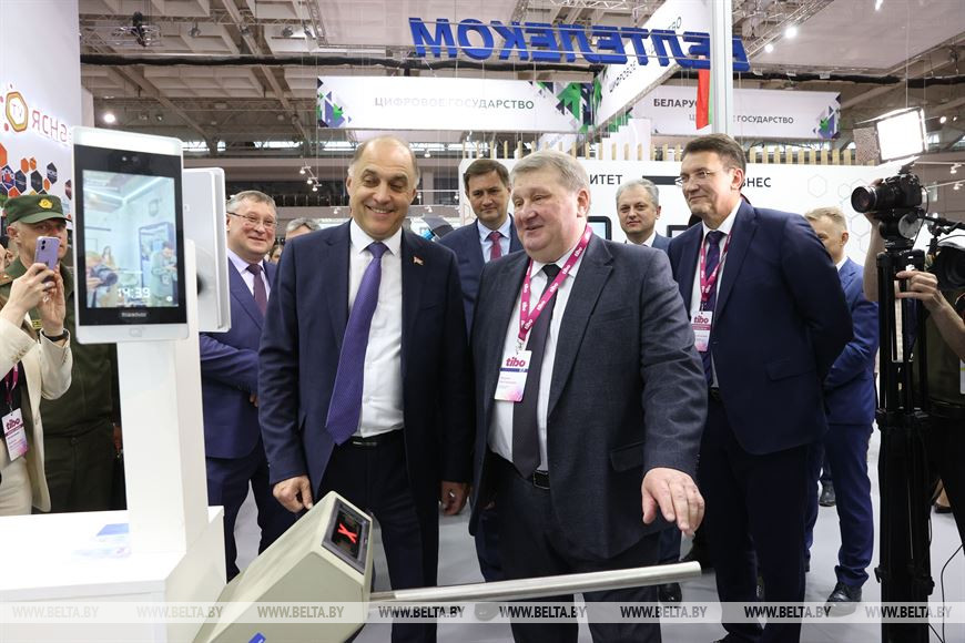 20 апреля, Минск /Корр. БЕЛТА/. "Белтелеком" как генеральный партнер международного форума информационно-коммуникационных технологий ТИБО-2023 представил на площадке "Минск-Арены" стенд, который демонстрирует последние достижения предприятия в сфере цифровых технологий и умного города. Технологии не стоят на месте, о том, какие решения "Белтелеком" совершенствует и разрабатывает, рассказал генеральный директор предприятия Юрий Петрученя на пленарном заседании VI Белорусского ИКТ-саммита.