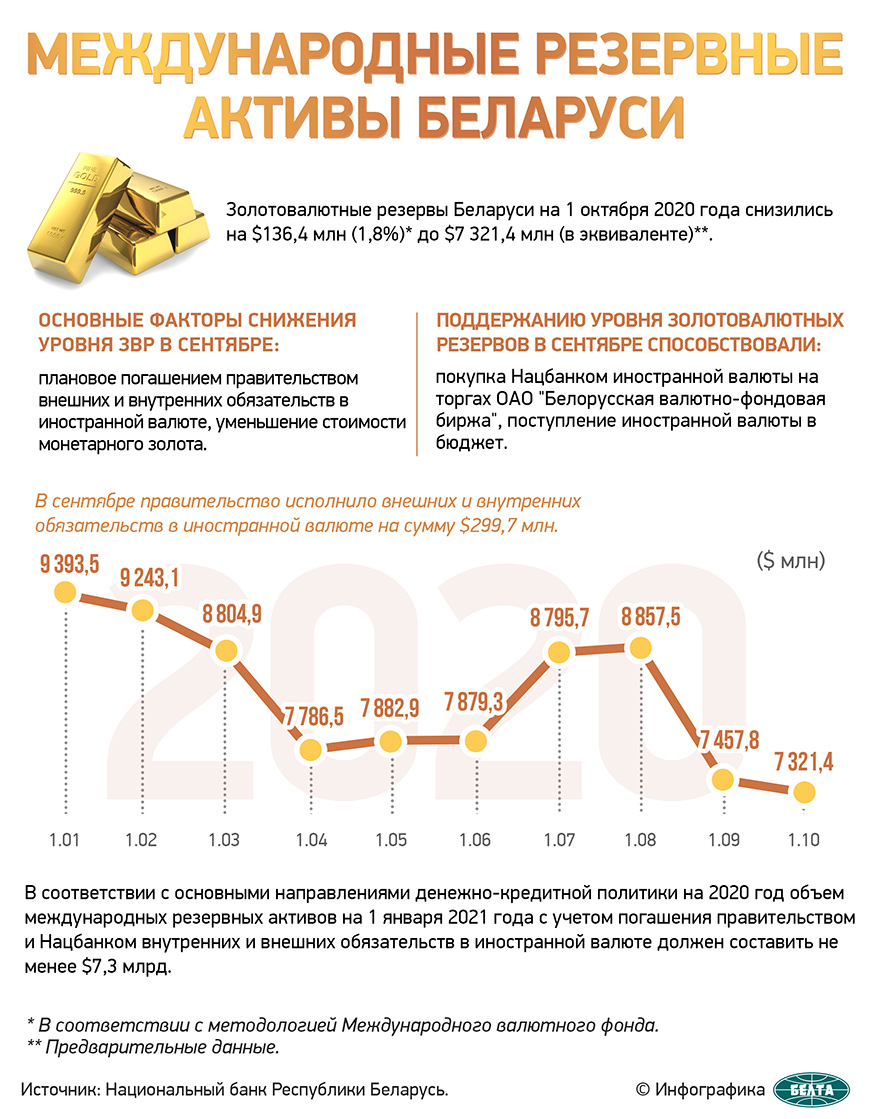 Поддержанию уровня золотовалютных резервов в сентябре способствовали покупка Национальным банком иностранной валюты на торгах Белорусской валютно-фондовой биржи, а также поступление иностранной валюты в бюджет.