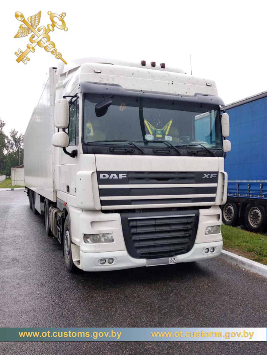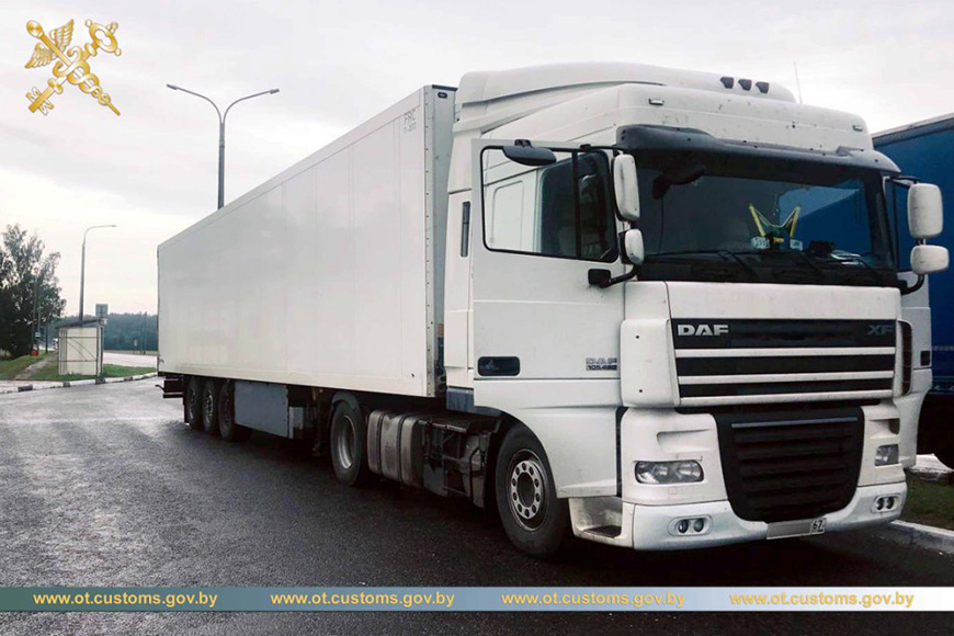Установлено, что этот грузовик является двойником транспортного средства, которое ранее пересекало таможенную границу в пункте пропуска "Брузги" и действительно перевозило указанный в документах товар. Для подтверждения подделки регистрационных знаков задержанных грузовика и полуприцепа, свидетельства об их регистрации, а также документов на груз назначены соответствующие экспертизы.