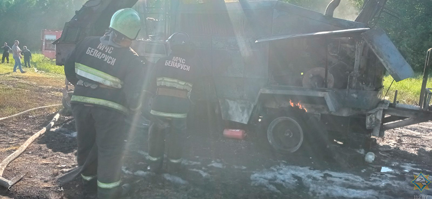 "17 июня в 17.42 в центр оперативного управления Лепельского РОЧС поступило сообщение о пожаре кормоуборочного комбайна вблизи деревни Залучино Лепельского района. По прибытии к месту вызова подразделений МЧС наблюдалось открытое горение кормоуборочного комбайна "КВК-800", 2010 года выпуска, который проводил работы по заготовке корма. Собственник - ОАО "Лепельагросервис", - рассказали в пресс-службе.