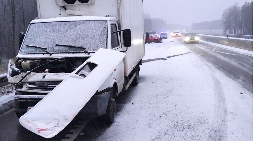 Инцидент произошел сегодня в 7.00 на 143-м км автодороги Минск - Гродно в Ивьевском районе. "33-летний водитель автомобиля "Ивеко" двигался по крайней правой полосе в направлении Минска. В какой-то момент 24-летний водитель впереди движущегося "Фольксвагена" начал снижать скорость из-за поломки автомобиля, а водитель "Ивеко" не был готов к этому и допустил столкновение с легковушкой", - рассказали в ГАИ.