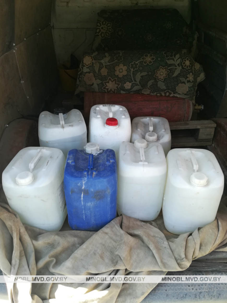 При досмотре в грузовом отсеке микроавтобуса милиционеры обнаружили пять пластмассовых емкостей объемом 20 л каждая и две канистры объемом по 25 л с прозрачной жидкостью с характерным запахом самогона. Сопроводительных документов на груз у мужчины не оказалось. По словам водителя, он двигался из деревни Заболотье в город.