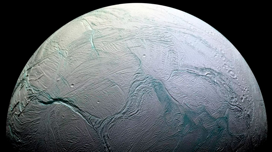 Возле южного полюса Энцелада расположены гейзеры, струи воды от которых из-за слабого гравитационного поля планеты улетают прямо в космос. Так вот, в этих гейзерах нашли много органических молекул и крошечные крупинки твердых силикатных частиц. То есть вода в океане подо льдом контактирует со скалистым дном при температуре не менее 90°С. Помимо этого, в воде растворено много солей и некоторые органические соединения. Все это говорит о том, что у Энцелада горячее расплавленное ядро, которое может разогреть "нутро" планеты до температур, необходимых для возникновения жизни, подобной земной.