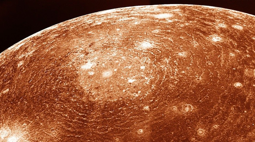 Каллисто - еще один спутник Юпитера. По размеру он примерно такой же, как и Меркурий. Поверхность - ледяные поля, как у Европы, и кратеры. При этом предполагается, что подо льдом есть соленый океан глубиной от 50 до 300 километров. Ученые высчитали, что объем вод на Каллисто в два раза больше, чем во всех океанах нашей планеты.