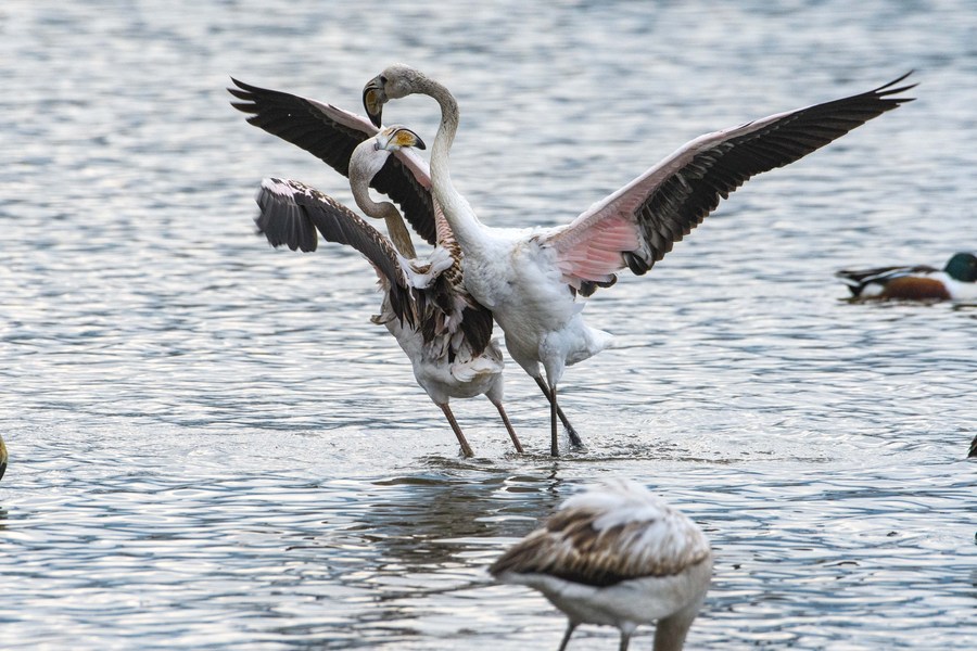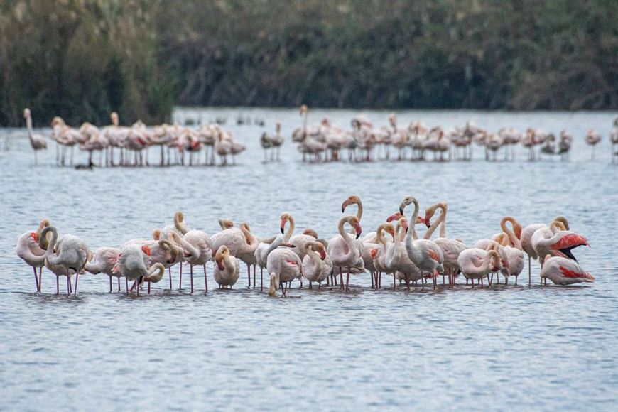 8 декабря, Пекин /БЕЛТА - СИНЬХУА/. По пути в теплую Африку стаи фламинго останавливаются на отдых в долине Хула на севере Израиля. Весной они отправятся в обратное путешествие в Европу.-0-
