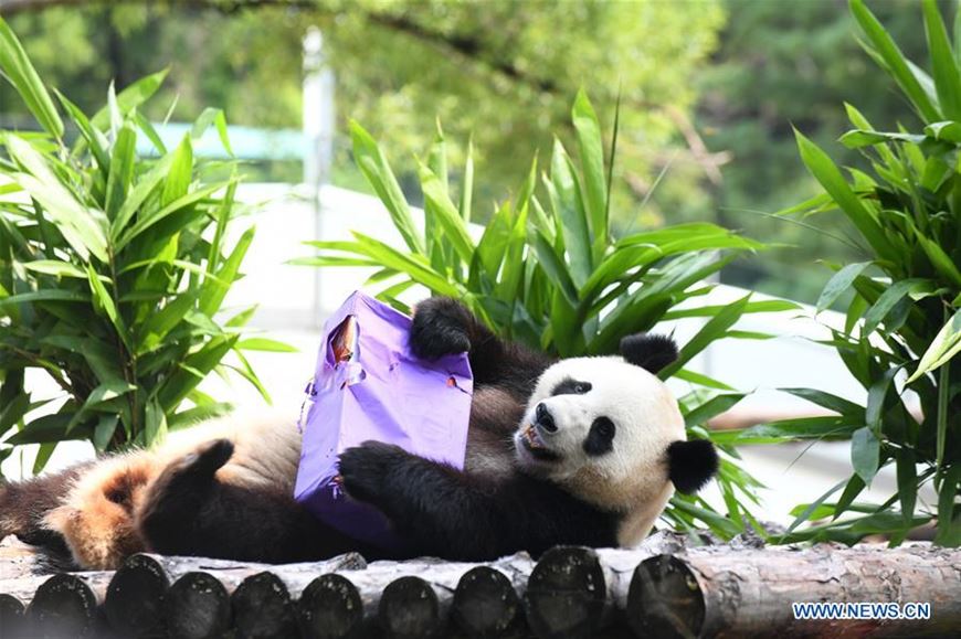 31 июля, Минск /Корр. БЕЛТА/. Гигантские панды Чу Синь и Му Юнь отпраздновали свой четвертый день рождения в парке Сибирского тигра в Чанчуне (китайская провинция Цзилинь). На снимках агентства "Синьхуа" запечатлены животные, которые резвятся на траве, наслаждаются праздничной трапезой и с любопытством разворачивают подарки.-0-