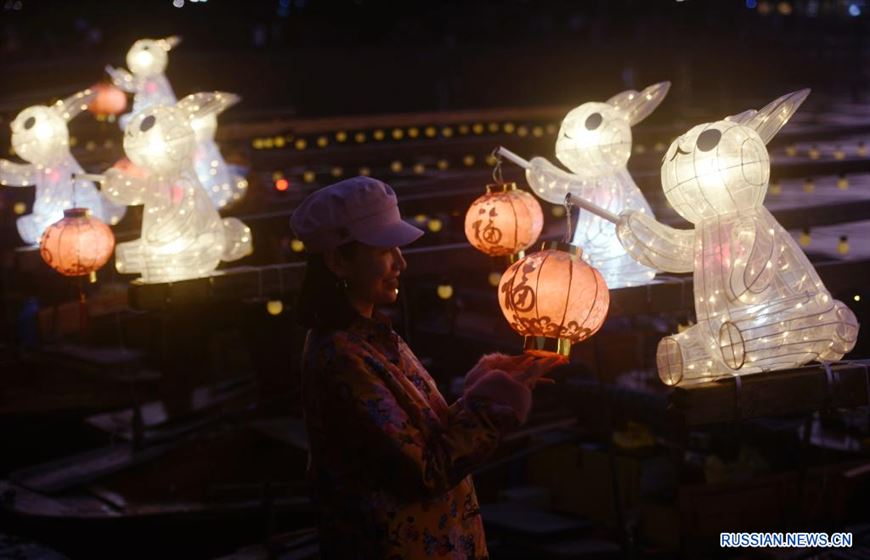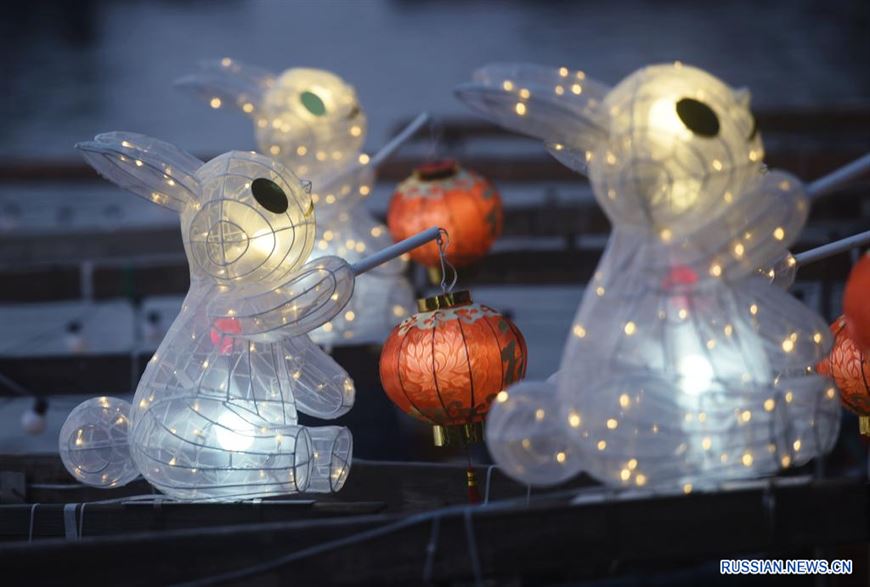 12 января, Ханчжоу /БЕЛТА -СИНЬХУА/. С приближением года Кролика 30 гребных лодок, оснащенных фонарями в виде зайчика, недавно появились на озере Сиху в городе Ханчжоу. Местные жители и туристы во время водных прогулок на лодках могут насладиться пейзажами и милыми фонарями.-0-