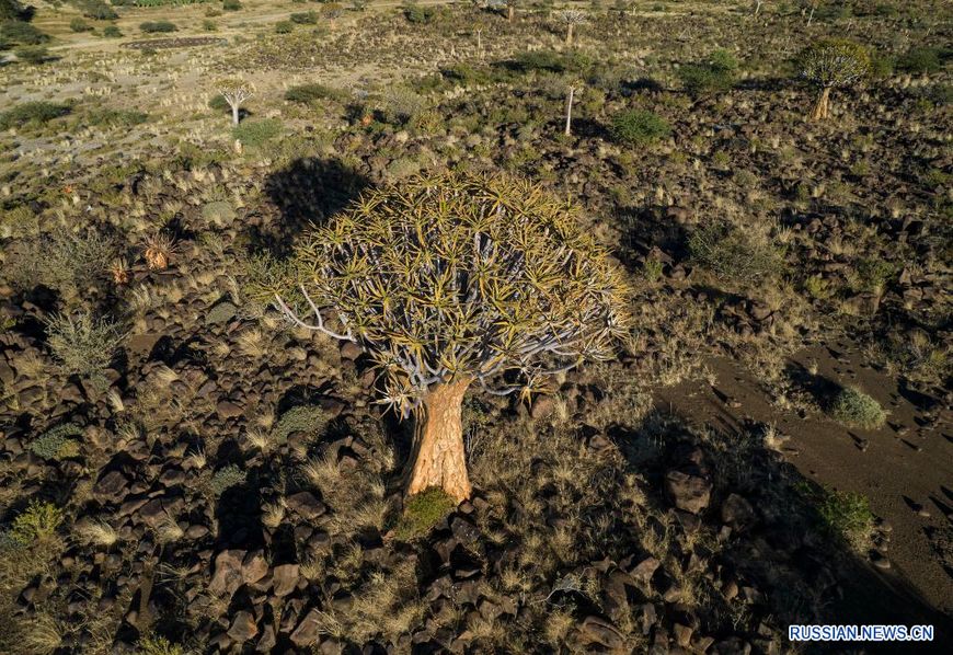 4 мая, Намибия /БЕЛТА - СИНЬХУА/. Колчанное дерево растет в южной части Намибии. Это древовидное растение рода алоэ, которое может адаптироваться к сухому и жаркому климату страны. Средняя высота взрослого дерева составляет около 5 м.-0-