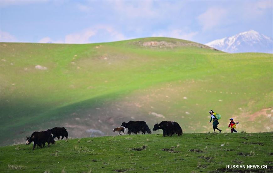 12 июня, Цинхай /БЕЛТА-СИНЬХУА/. На фотографиях запечатлены живописные пейзажи высокогорной степи, расположенной в южной части провинции Цинхай на северо-западе Китая.-0-