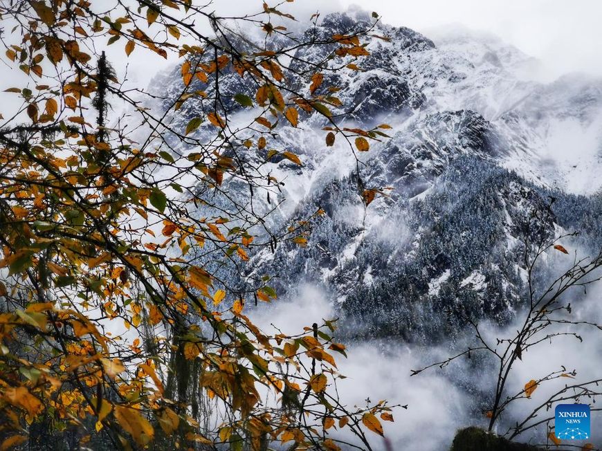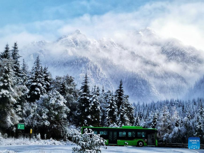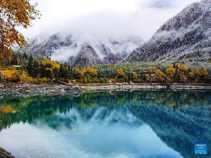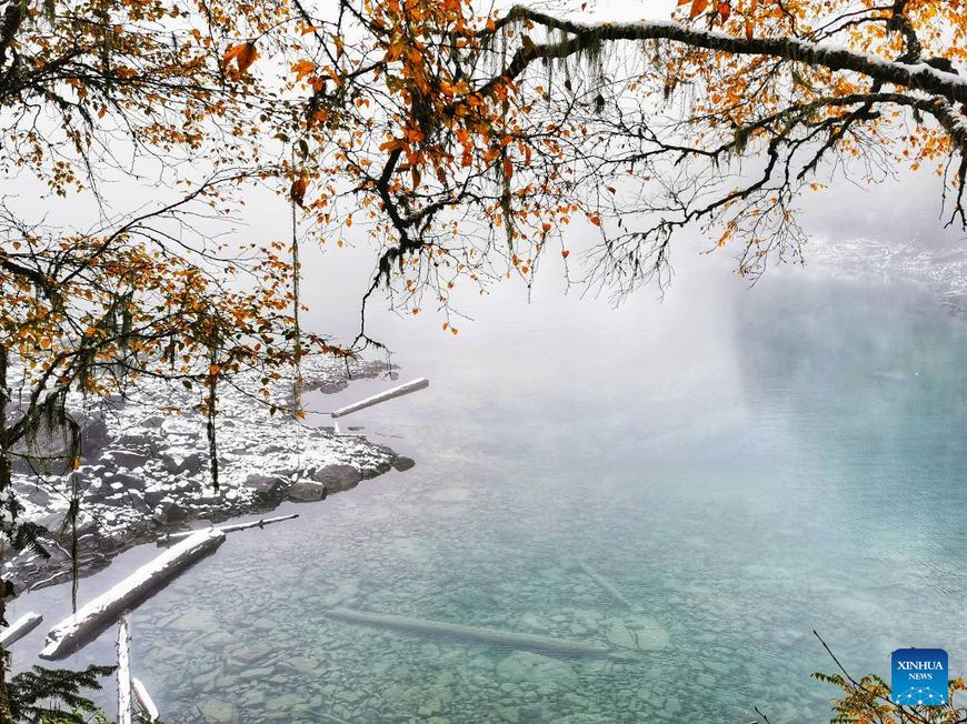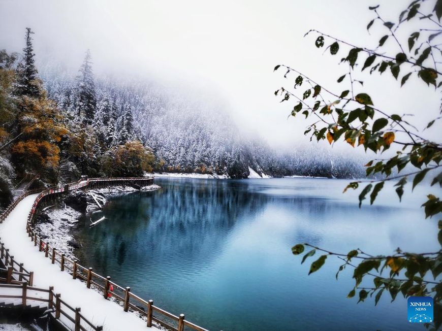 7 октября, Сычуань /БЕЛТА - СИНЬХУА/. Район долины Цзючжайгоу, расположенной в провинции Сычуань на юго-западе Китая, завораживает своей красотой и величественностью после снегопада.-0-
