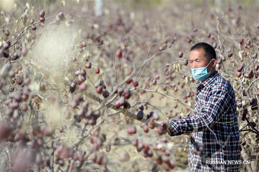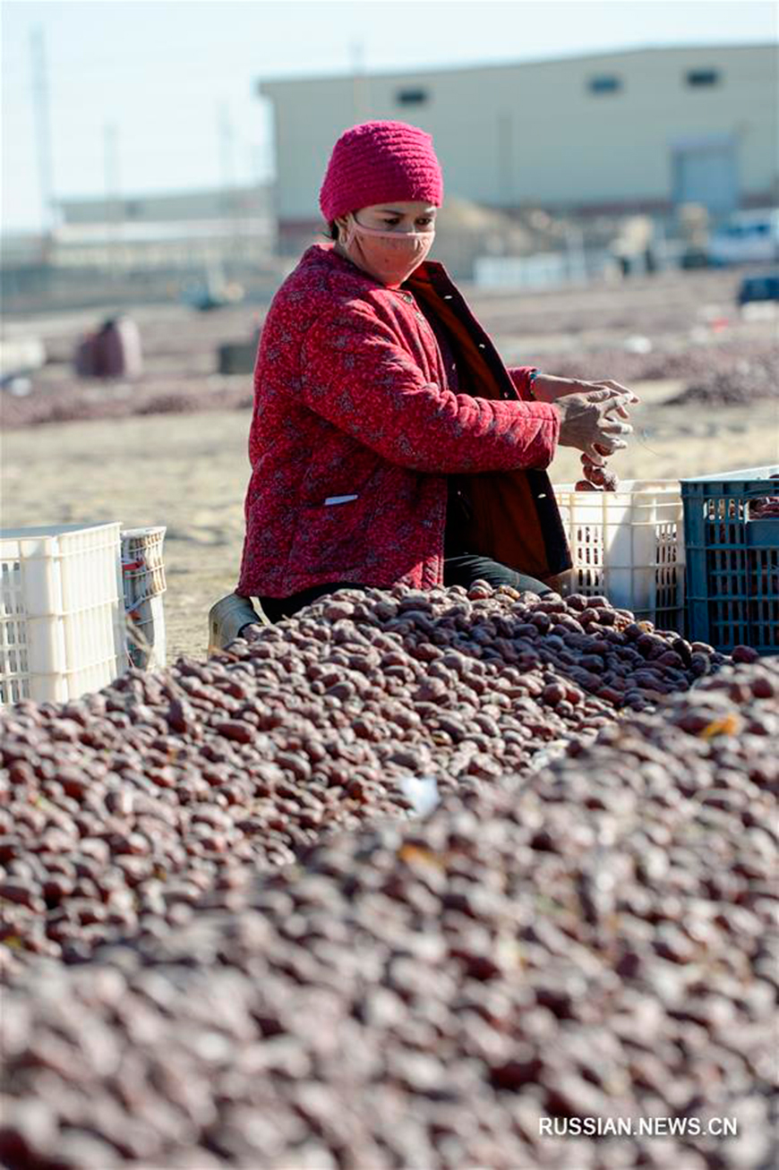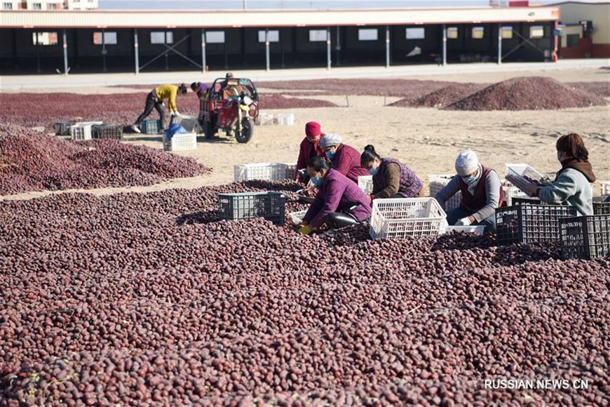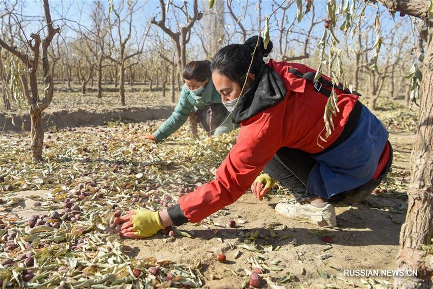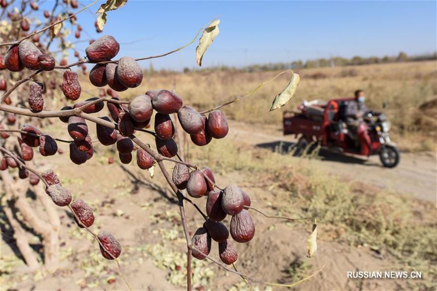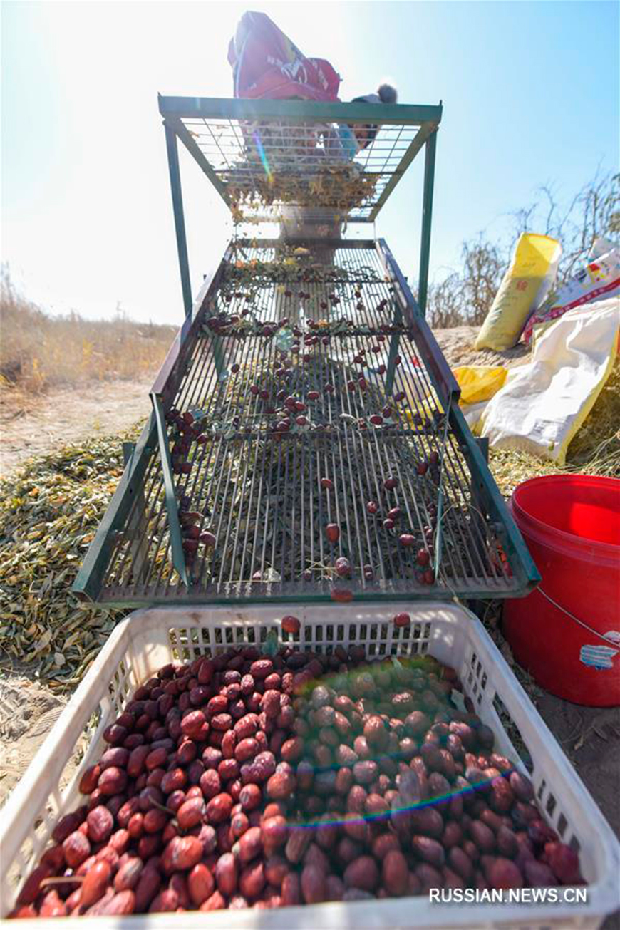 9 ноября, Хотан /БЕЛТА-СИНЬХУА/. С приходом ноября на плантациях фиников, расположенных в северо-западной части Китая в округе Хотан Синьцзян-Уйгурского автономного района, начался сбор урожая.-0-