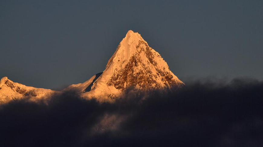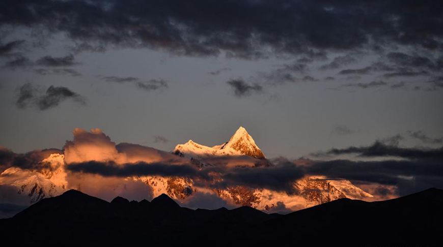 19 октября, Ньингчи /БЕЛТА - СИНЬХУА/. Вершина Намджагбарва, расположенная в восточной конечности Гималаев, является самой высокой горной вершиной в городском округе Ньингчи Тибетского автономного района, юго-западный Китай. Круглогодично покрытый снегом треугольный пик в лучах заходящего солнца выглядит особенно живописно.-0-
