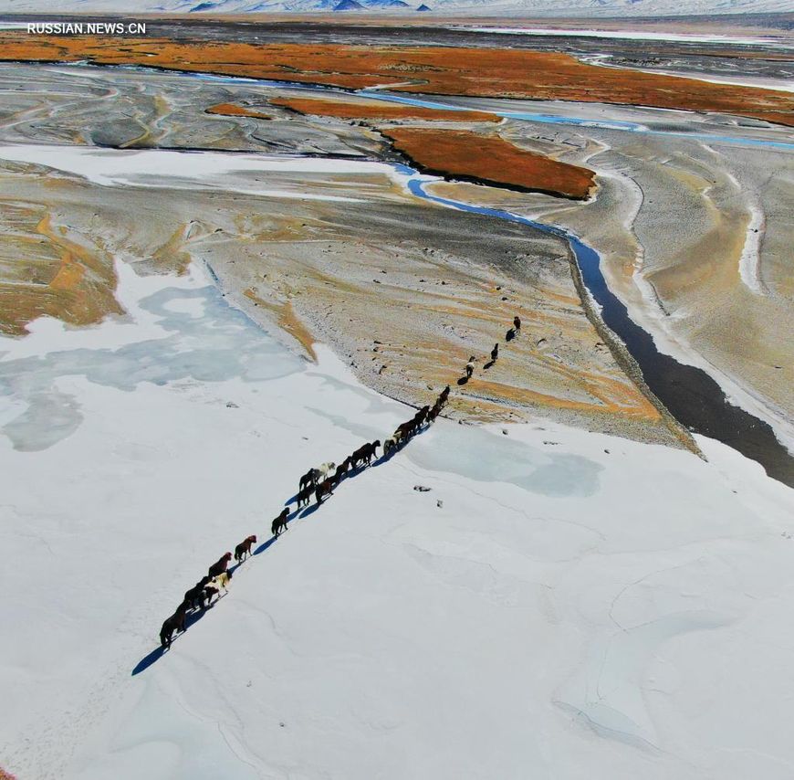 10 января, Ганьсу /БЕЛТА - СИНЬХУА/. Зимние пейзажи степи Хаэртэн в провинции Ганьсу, Северо-Западный Китай, наполнены энергией и бодростью.-0-