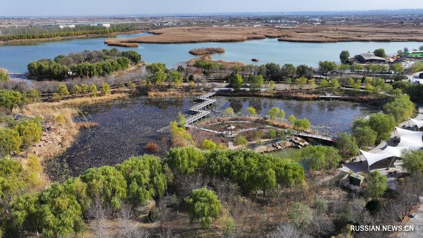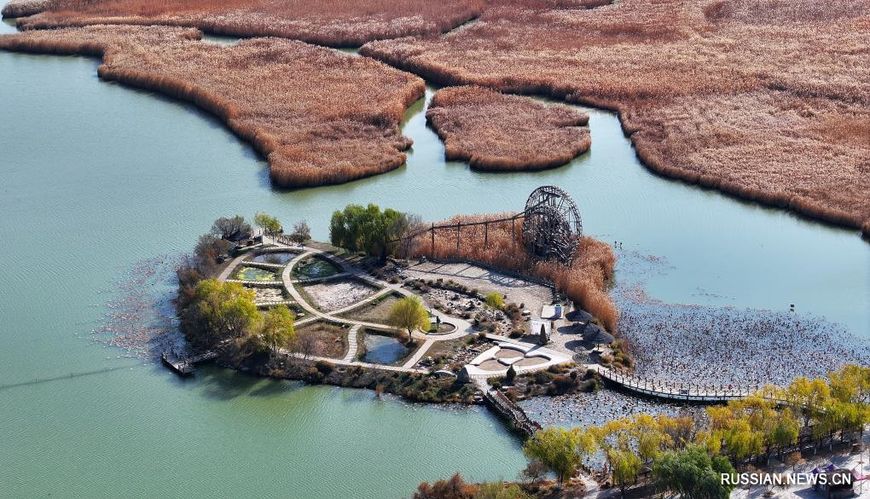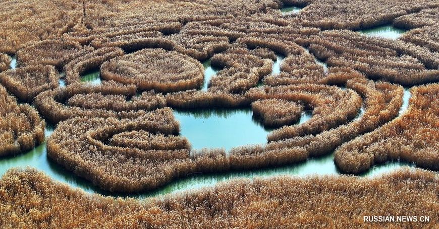 13 ноября, Иньчуань /БЕЛТА - СИНЬХУА/. Ранней зимой парк водно-болотных угодий "Минцуйху" на территории города Иньчуань Нинся-Хуэйского автономного района на северо-западе Китая преображается. Деревья и камыши одеваются в золотые убранства, завораживая своей красотой.-0-
