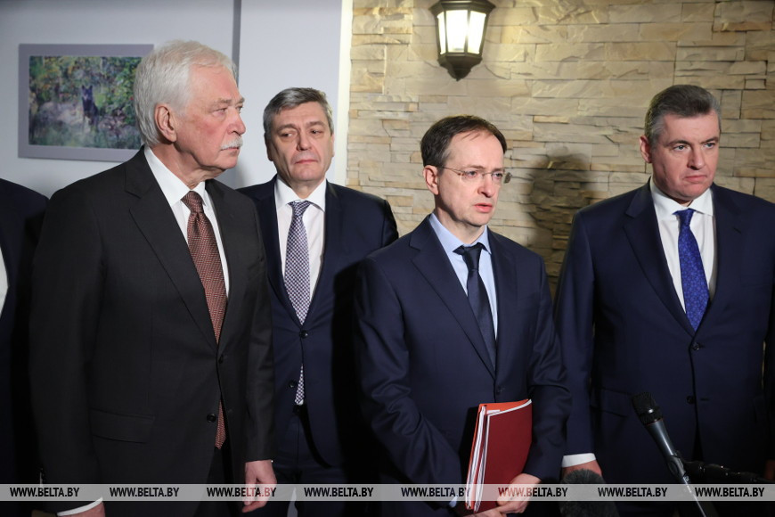 7 марта, Брестская область /Корр. БЕЛТА/. Российская сторона надеется, что по итогам третьего раунда переговоров с Украиной удастся обеспечить нормальную работу гуманитарных коридоров. Об этом заявил руководитель российской делегации на переговорах с украинской стороной помощник президента РФ Владимир Мединский, передает корреспондент БЕЛТА.
