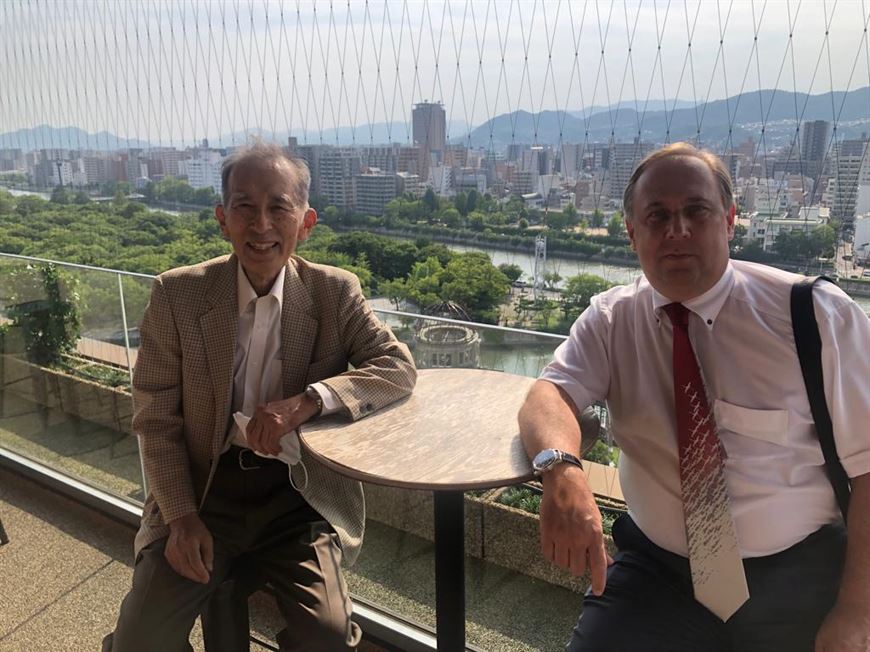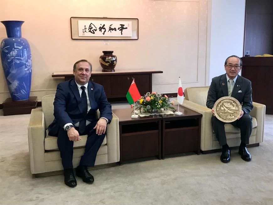 Посол встретился также с мэром Хиросимы Казуми Мацуи. Дипломат отметил, что за последние годы заметно расширились двусторонние межрегиональные контакты и реализован ряд совместных проектов. Посол поблагодарил городские власти за принятие в 2021 году положительного решения о передаче капсул с землей из Хиросимы в крипту храма всех Святых в Минске.