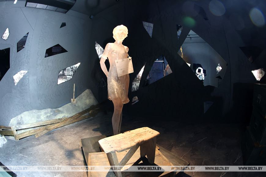В сжатые сроки в Хатыни был построен новый музей - одноэтажное здание с шестью выставочными залами, где посетители поэтапно знакомятся с историей крупных военных конфликтов, трагедией мирного населения в них: "Дерево истории" (про период военных походов и войн на белорусской земле в Х-ХХ веках), "Начало войны", "Оккупация", "Сожженные деревни", "Вечность" (символизирует место поклонения всем жертвам среди мирного населения и включает в себя названия всех пострадавших населенных пунктов) и "Память". Этот зал, куда посетители попадают по завершении экскурсии по музею, выстроен в форме двуступенчатого атриума и посвящен исследованиям и воплощениям в художественных образах, кинематографии и архитектурных комплексах темы геноцида белорусского народа в годы Великой Отечественной войны.-0-