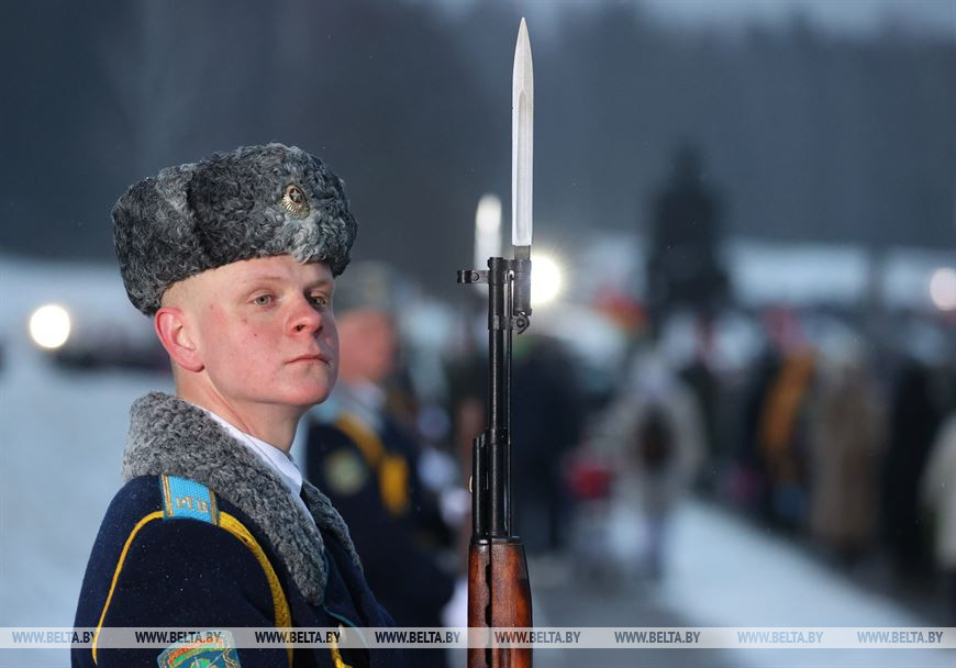 21 марта, Минск /Корр. БЕЛТА/. Президент Беларуси Александр Лукашенко принимает участие в республиканском митинге-реквиеме "Лампада памяти", приуроченном к 78-й годовщине хатынской трагедии, передает корреспондент БЕЛТА.