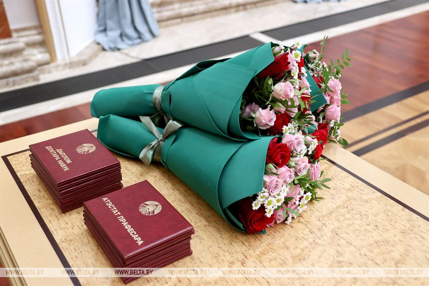 Александр Лукашенко 9 февраля вручил научным и научно-педагогическим работникам дипломы доктора наук и аттестаты профессора. Торжественная церемония состоялась во Дворце Независимости.