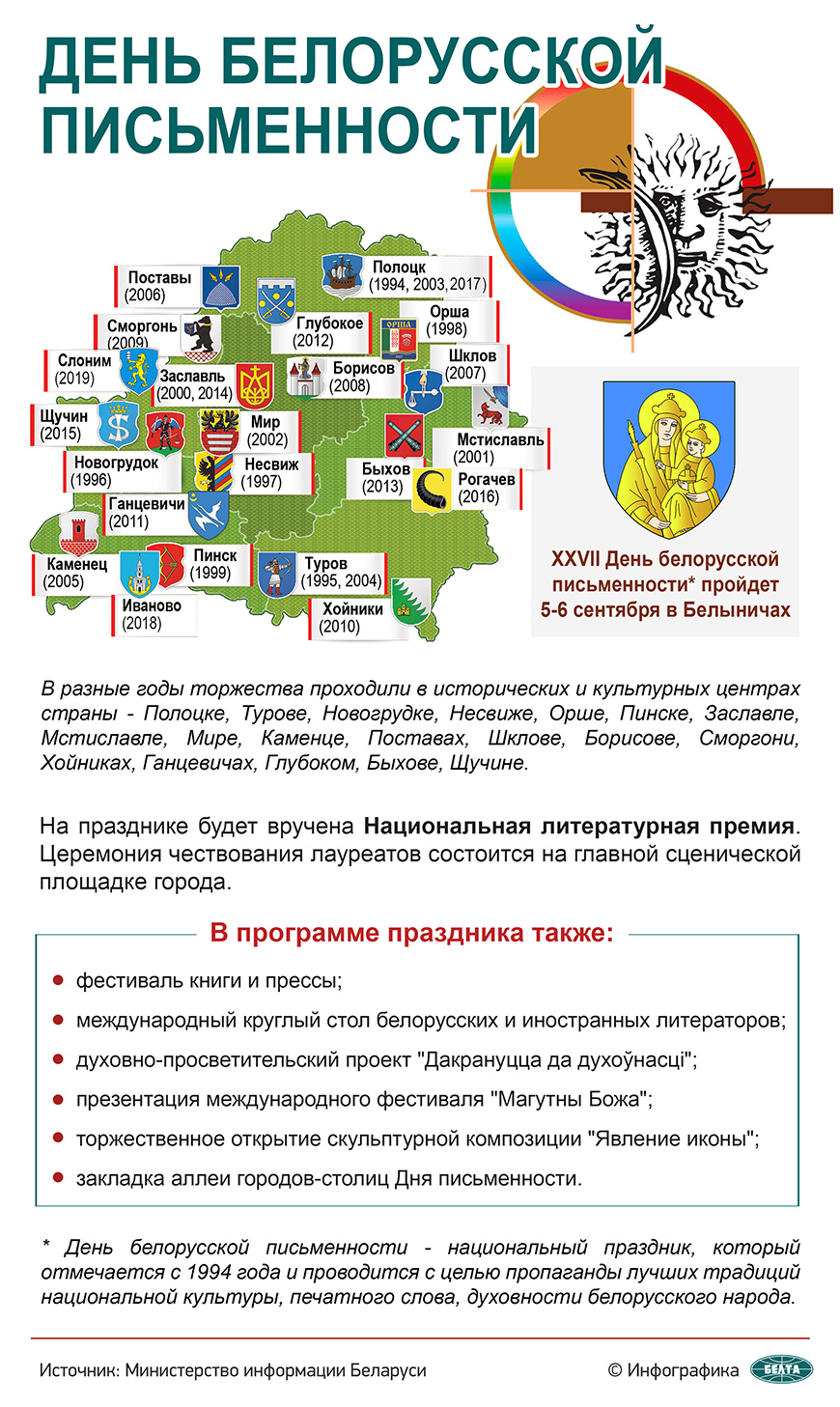 Эстафету Дня письменности сегодня принял город Копыль Минской области. "По такому же принципу, как мы в прошлом году перенимали опыт Слонима, теперь нас посещает делегация из Копыля. И так внутри Беларуси мы становимся своеобразными городами-побратимами", - добавил председатель Белыничского райисполкома.-0-