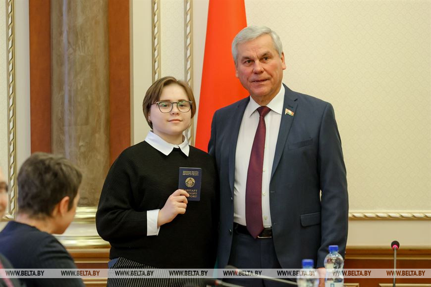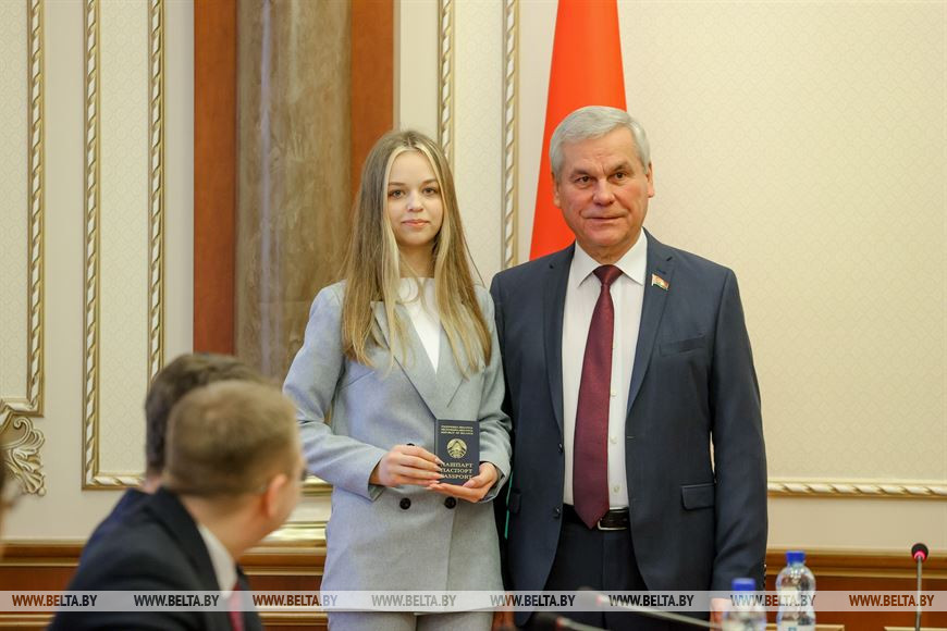 16 марта, Минск /Корр. БЕЛТА/. Председатель Палаты представителей Национального собрания Владимир Андрейченко провел сегодня встречу с учащейся молодежью Витебской области и вручил им паспорта, передает корреспондент БЕЛТА.
