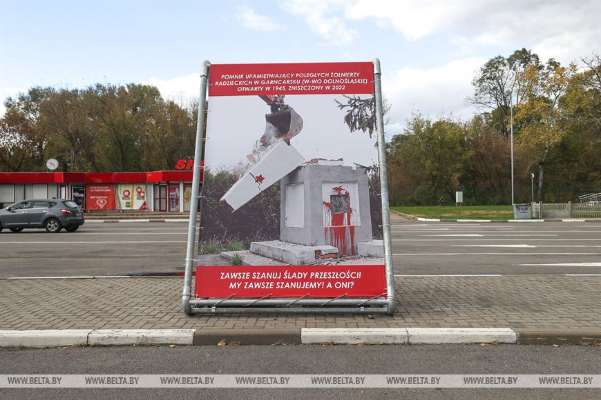 12 октября, Брест /Корр. БЕЛТА/. В крупнейшем на белорусско-польской границе пункте пропуска "Брест" появились билборды о памятниках советским воинам, разрушенным в наше время по решению польских властей, передает корреспондент БЕЛТА.