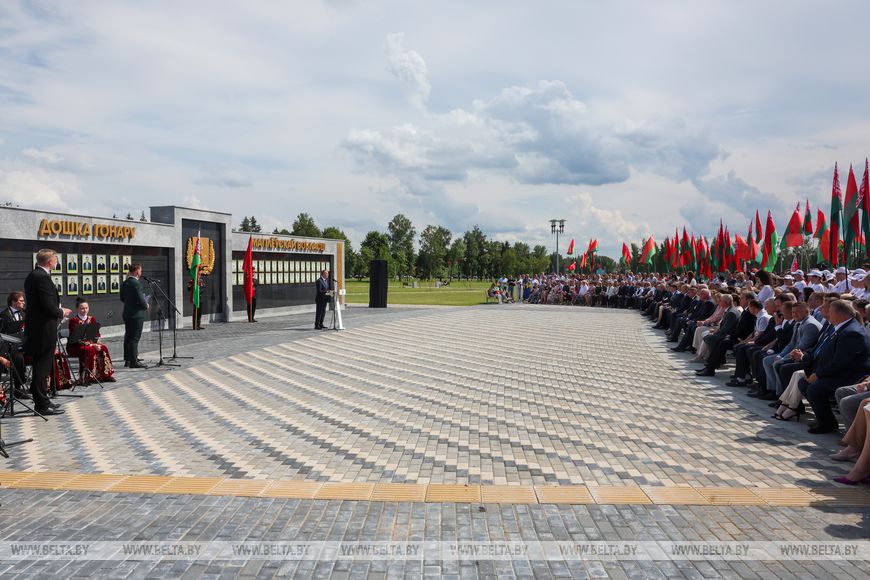Председатель Могилевского облисполкома Анатолий Исаченко отметил, что новая Доска почета расположилась в знаковом месте - на Буйничском поле. "Символично, что она расположена рядом с новым музеем, отражающим военные и трудовые подвиги наших земляков, которые в яростных сражениях и трудовых буднях принесли славу нашей Могилевщине, - подчеркнул он. - История страны создавалась людьми, которые своими руками, умом и невероятной силой духа по крупицам формировали сегодняшний облик. Суверенная Беларусь, ее сила и богатство рождаются в народном единстве, трудолюбии и стремлении созидать".