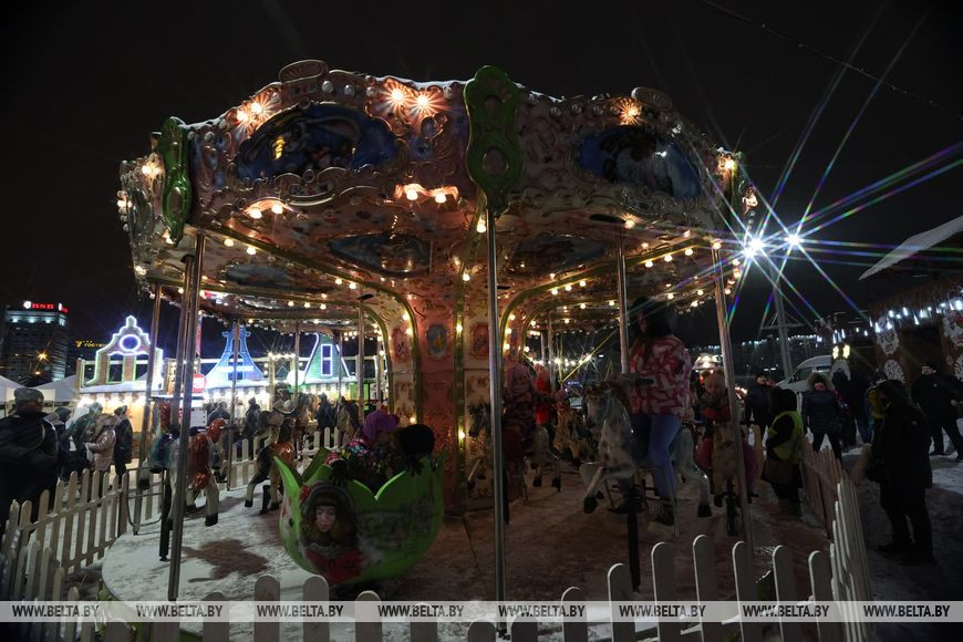 17 декабря, Минск /Корр. БЕЛТА/. В столице стартовала самая большая рождественская ярмарка "Калядны кiрмаш". В программе мероприятия дегустация экзотических блюд, парк детских аттракционов, шоу самоваров и концерт, сообщает корреспондент БЕЛТА.