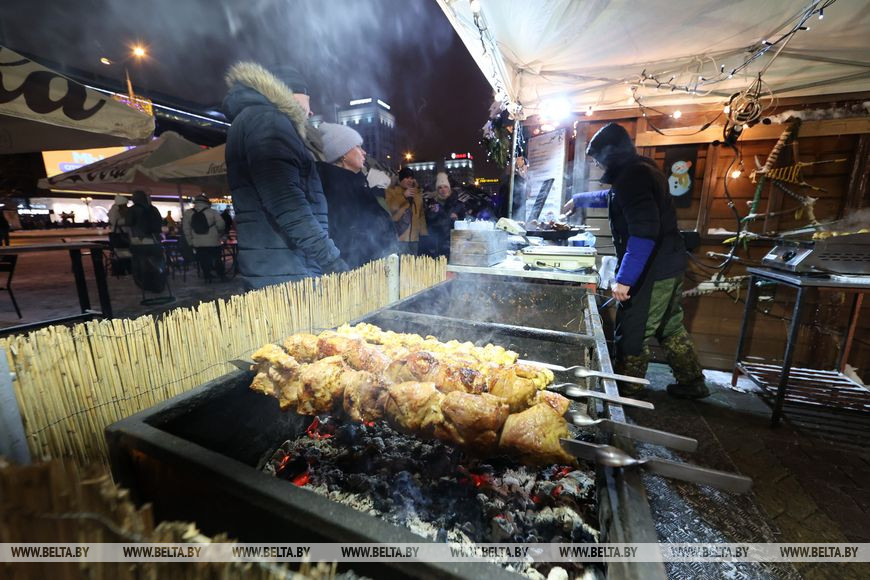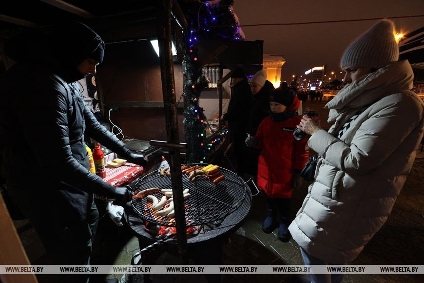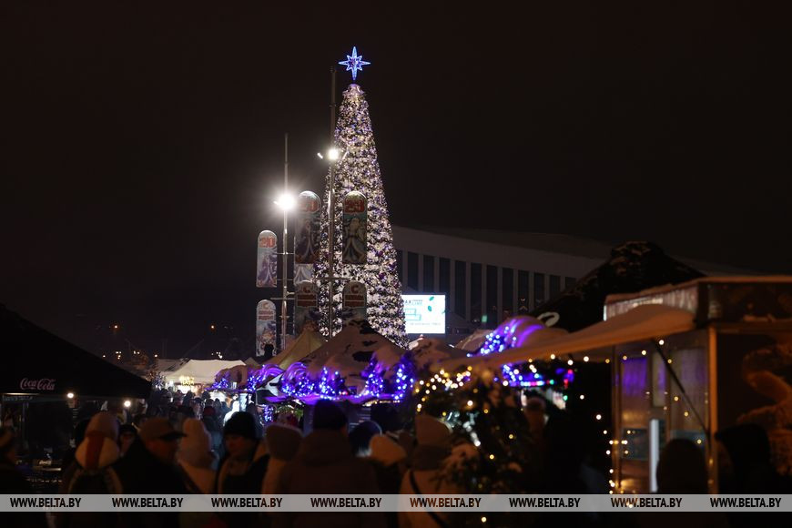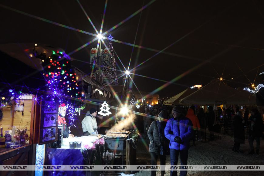 Рождественская ярмарка "Калядны кiрмаш" пройдет с 17 декабря по 15 января на площадке у Дворца спорта. В католическое Рождество в рамках ярмарки с 18.00 до 19.00 будет организовано театрализованное интерактивное шоу "Сказка в моменте", а также с 19.30 до 22.00 - развлекательная программа "Шчодры вечар". В новогоднюю ночь на площадке у Дворца спорта с 0.30 до 4.00 пройдет танцевальное шоу "Новый год для всех". А 7 января с 18.00 до 21.00 состоится концерт для всей семьи "С Рождеством и Новым годом", в программу которого включено проведение конкурса на "Лучший торговый объект общепита".-0-