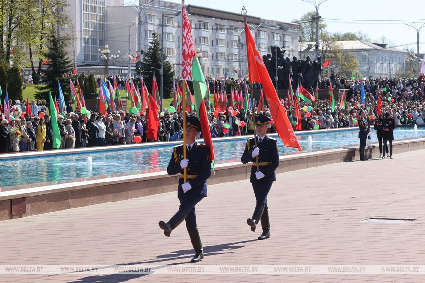 Сотни человек сегодня собрались на площади Победы почтить память советских воинов и вместе встретить великий праздник. Галина Васильева встречает его в Витебске в 77-й раз - первый, в 1945-м, она находилась еще на территории Германии, куда ее вместе с семьей угнали еще в начале войны. Она побывала в трех концлагерях совсем ребенком - в 1941-м девочке было всего 6 лет. "Мы вернулись домой только в августе 1945 года: сразу всех не могли вывезти. Очень хотелось домой. Приехали - ни кола ни двора, все разбито", - рассказала она.