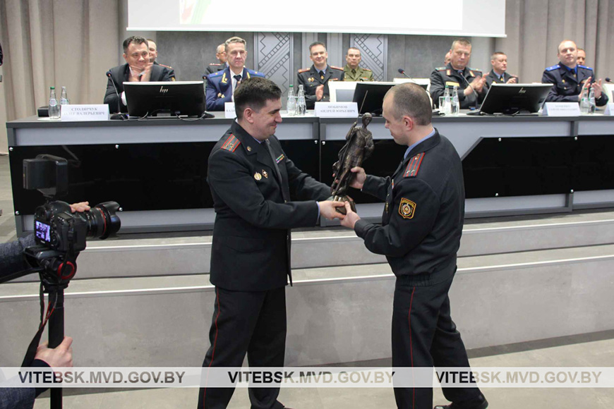 В УВД Витебского облисполкома подвели итоги прошедшего года и вручили награду "Святы Георгій - Узнагарода УУС Віцебскага аблвыканкама". Победители были определены в четырех категориях в зависимости от численности личного состава. На итоги конкурса повлияли результаты служебной деятельности за 2020 год. Лучшими в области были признаны ОВД администрации Октябрьского района Витебска (руководитель - подполковник милиции Дмитрий Бородавко), ОВД Новополоцкого горисполкома (полковник милиции Владимир Дубровский), ОВД Браславского райисполкома (подполковник милиции Сергей Бержанин), ОВД Россонского райисполкома (подполковник милиции Руслан Николаев).