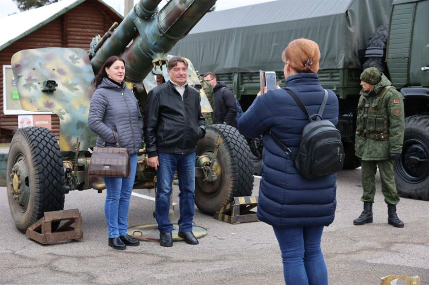 Белорусские военнослужащие устроили для гостей праздника настоящий музей под открытым небом. На территории музея красуются "Точка-У", реактивные системы залпового огня "Смерч" и "Град", 152-мм буксируемая гаубица "Мста-Б".