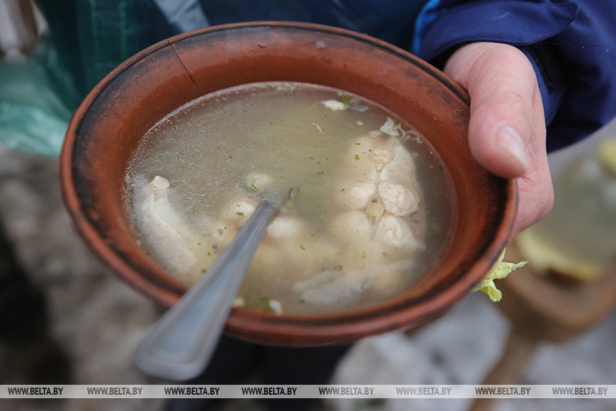 "Наше красивое местечко поселилось на берегу Немана. Щучка, окунек, плотва - все водится здесь. Стоит сказать, что раньше моринцы жили с рыбалки, глина здесь была еще, кстати", - рассказывает местная жительница Таисия Гудень у котелка с ухой. А рецепт, который высоко оценивают гости праздника "Моринская золотая рыбка", имеет семейную историю. "Так готовит уху мой муж. Для него это семейный рецепт. С самого детства он с отцом ходил на рыбалку, он его учил мастерству. И рецепт тоже перенял от него", - делится женщина.