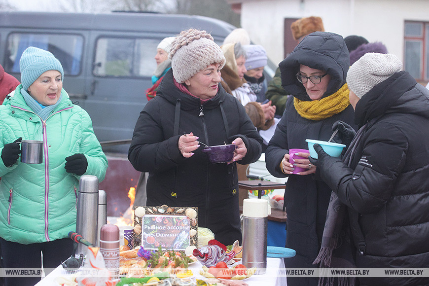 "Все так классно, так здорово, активно и вкусно. Мы впервые на этом празднике. Просто загляденье и объедение. Свою уху мы не варили. Местную пробуем с удовольствием. Но мы, кстати, тоже не с пустыми руками, радуем блюдами из рыбы по-ошмянски", - говорит Янина.
