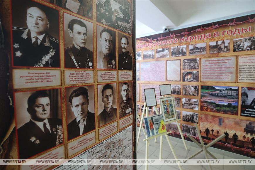 Экспозиция, которая знакомит с одной из наиболее трагических страниц белорусской истории, расположилась на четвертом этаже. Выставка начинается с фотографий пионеров-героев - простых советских ребят, которые были сверстниками сегодняшних учащихся школы. С фотографий на посетителей смотрят Марат Казей, Зина Портнова, Петя Клыпа, Леня Голиков, Валя Котик и другие герои, погибшие в совсем юном возрасте, отважно сражаясь с нацистскими оккупантами. Рядом с фотографиями приводится чудовищная статистика: каждый день в годы Великой Отечественной войны погибали 9168 детей.